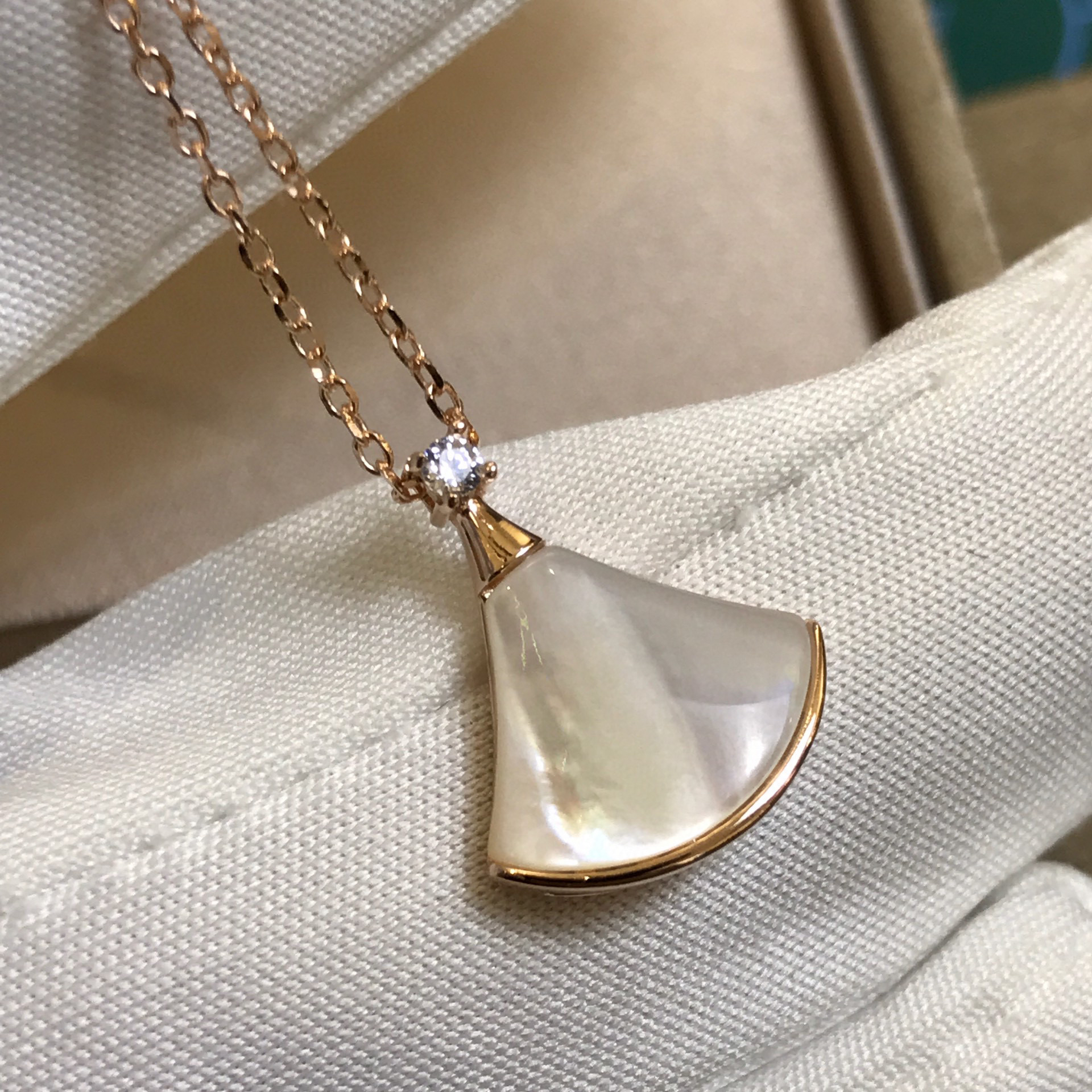 宝格丽小白裙扇子项链