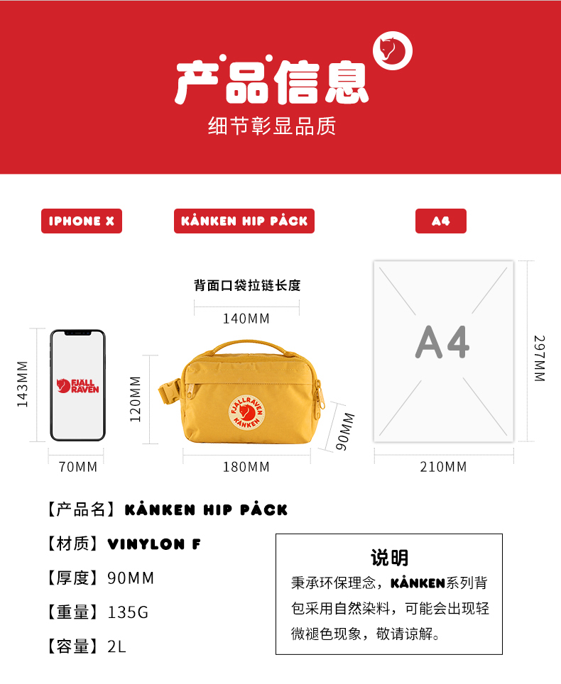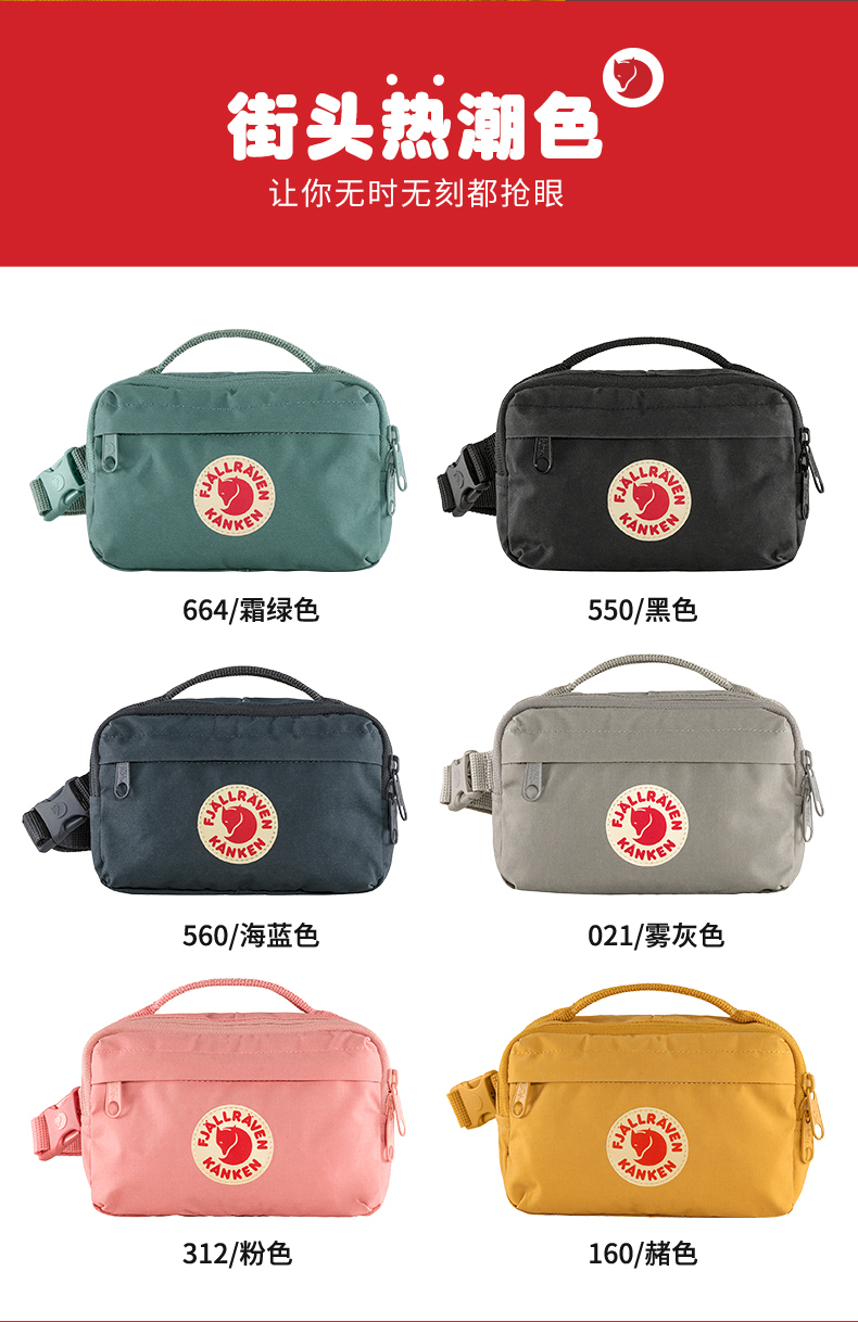 Fjallraven/北极狐Kanken Hip Pack时尚大容量户外跑步迷你运动包23796