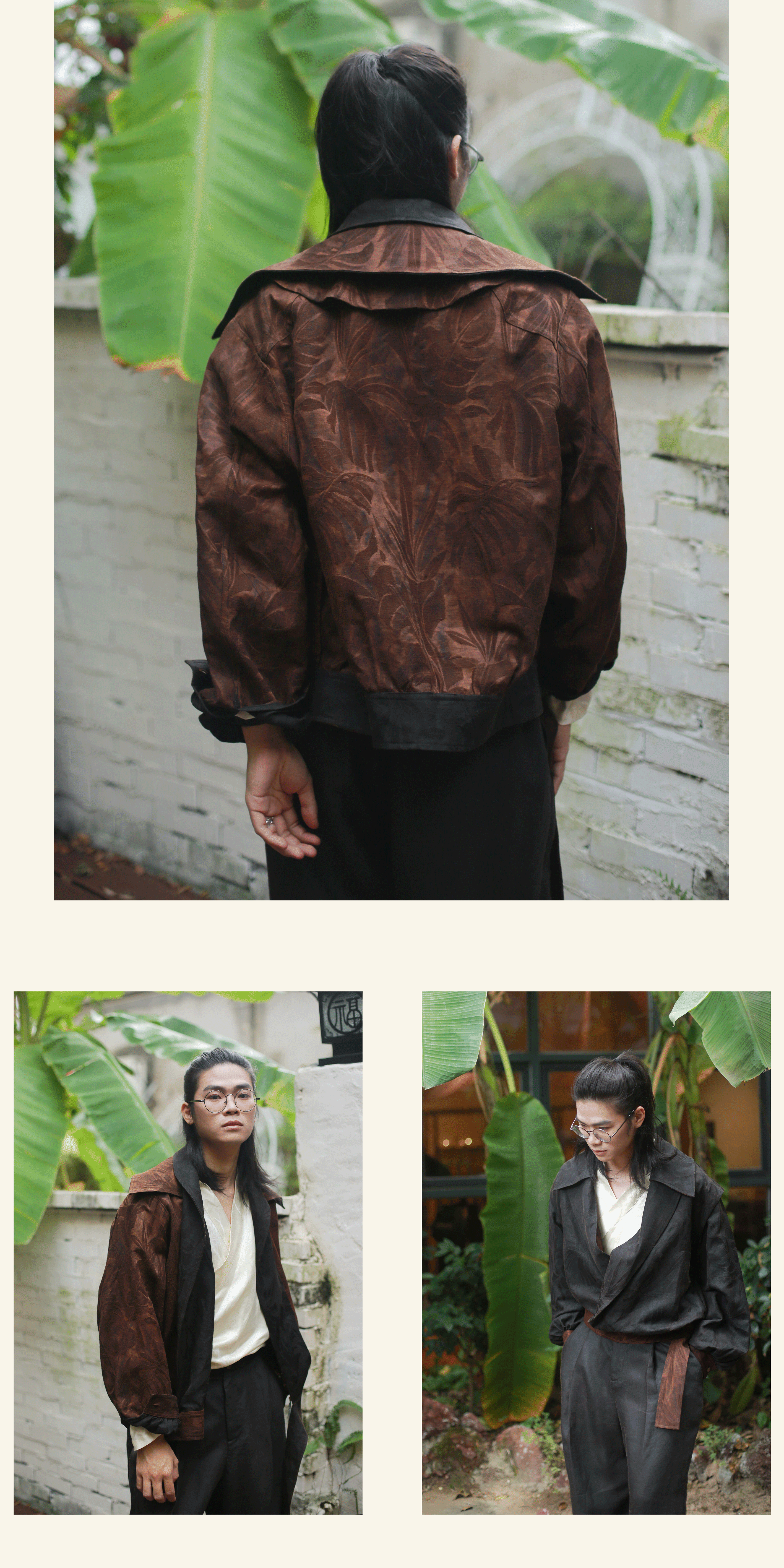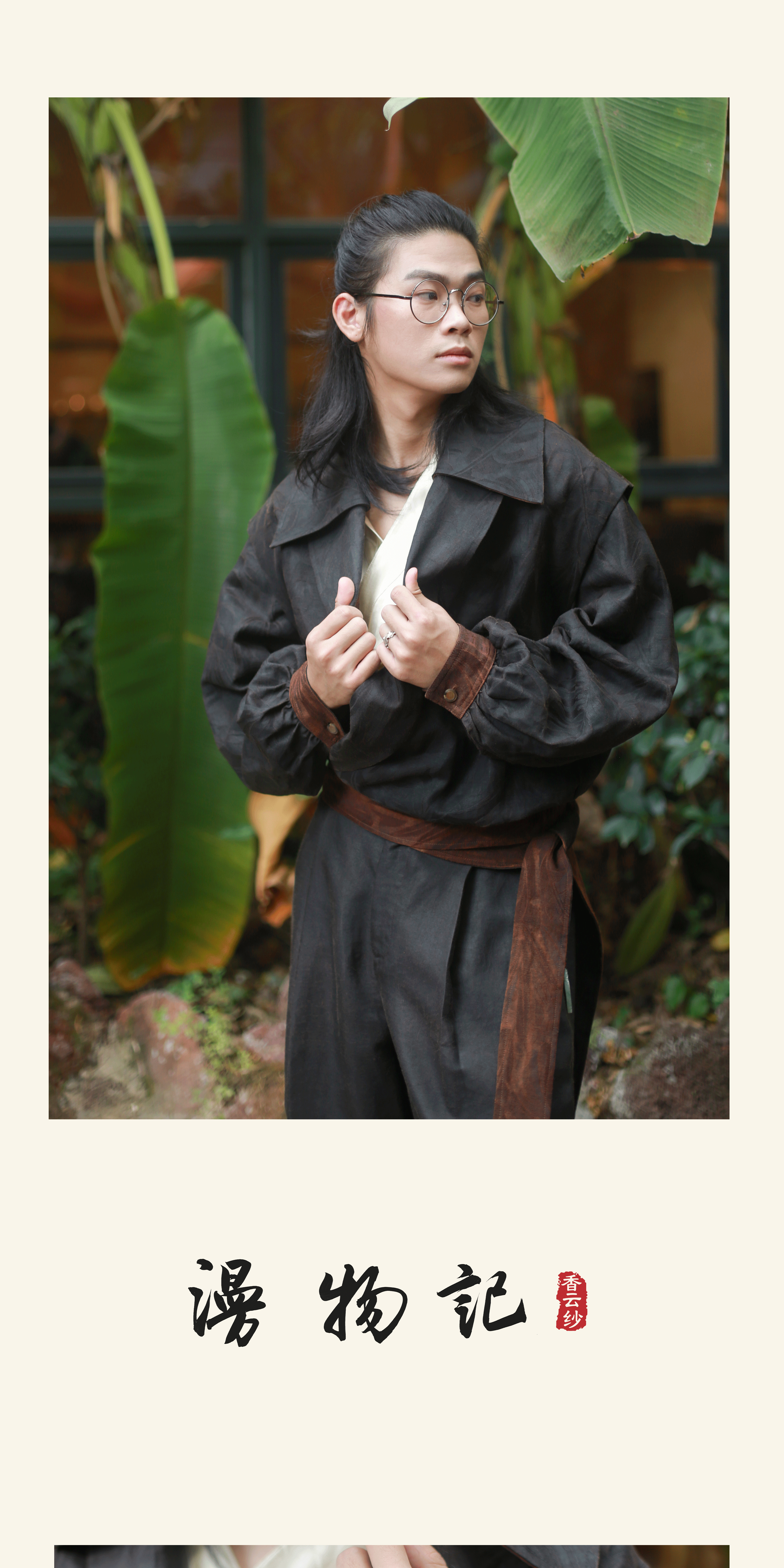 漫物记平板香云纱圆领系带棉上衣xys-318