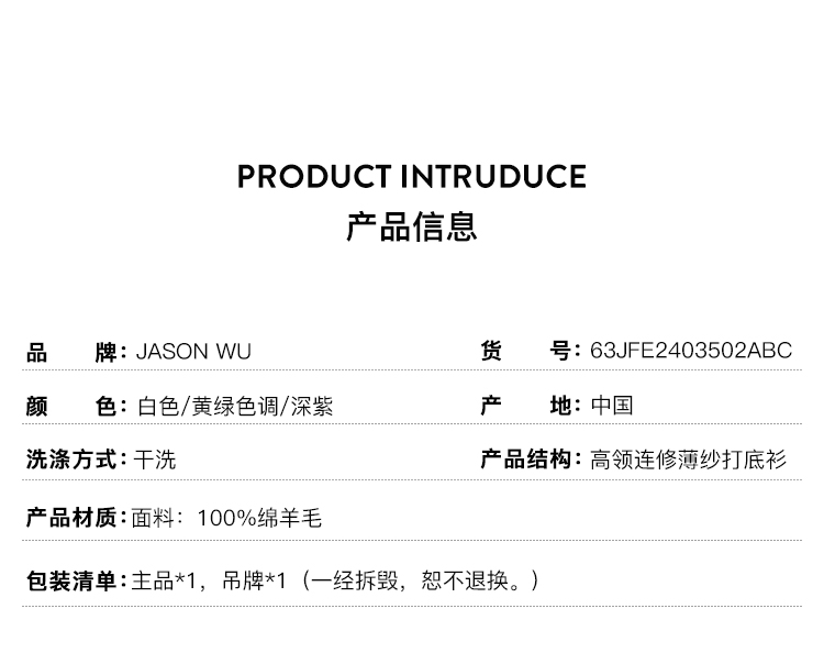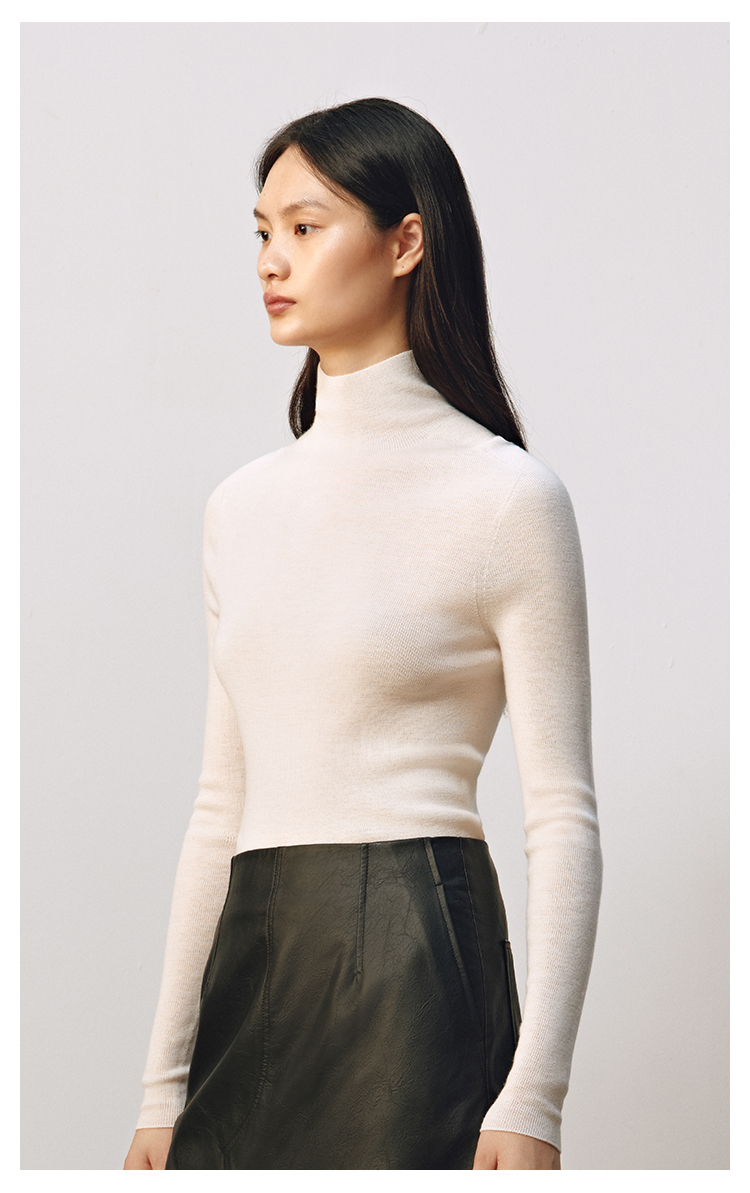 【JASON WU】(多色)25秋季新款高支羊毛基础百搭高领无缝通勤上衣针织衫女