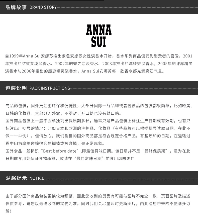 美国 ANNA SUI 安娜苏 独角兽香水 30ML