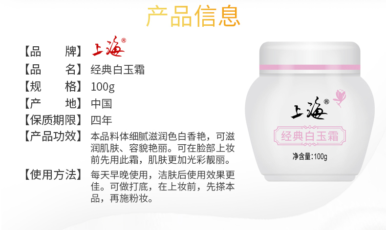 上海女人玉兰清新养颜雪花膏80g