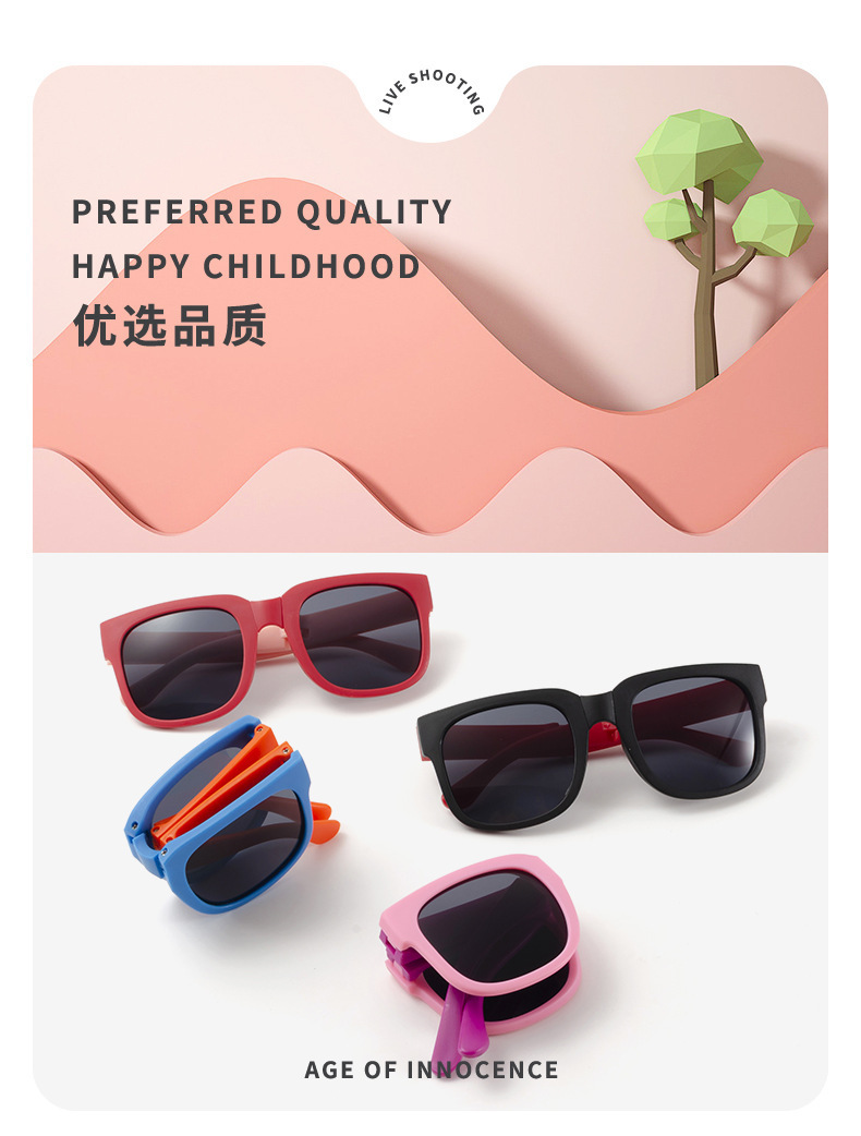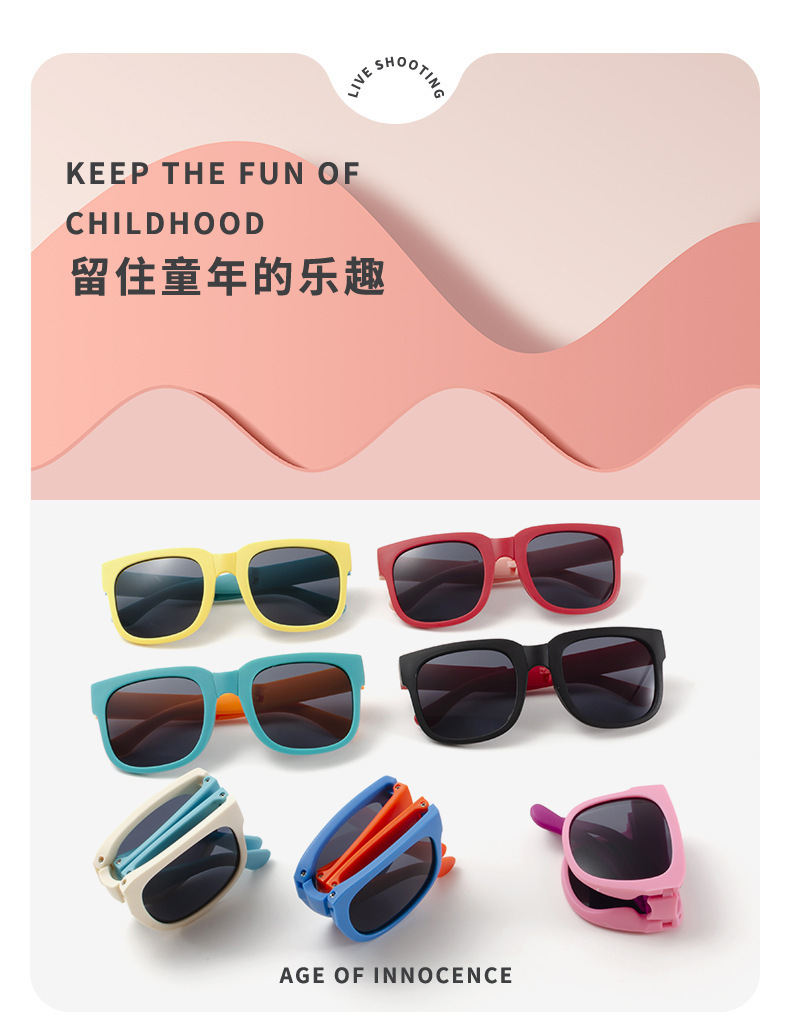 【酷酷哒!配送收纳盒】3-10岁男女童可折叠太阳眼镜,实力防晒,轻松佩戴,清晰视野。防晒无惧阳光。折叠设计独特,孩子戴上,好玩又带劲。户外敢于迎接夏天的挑战!