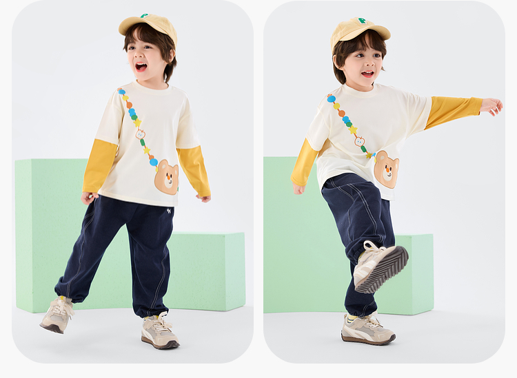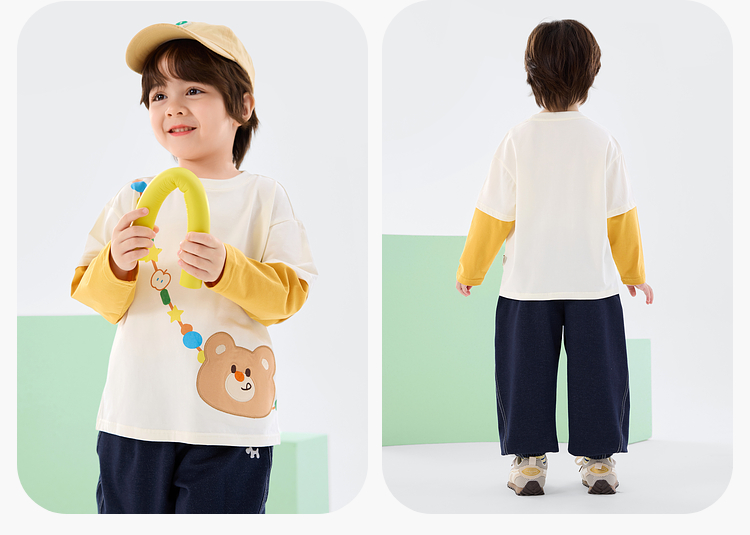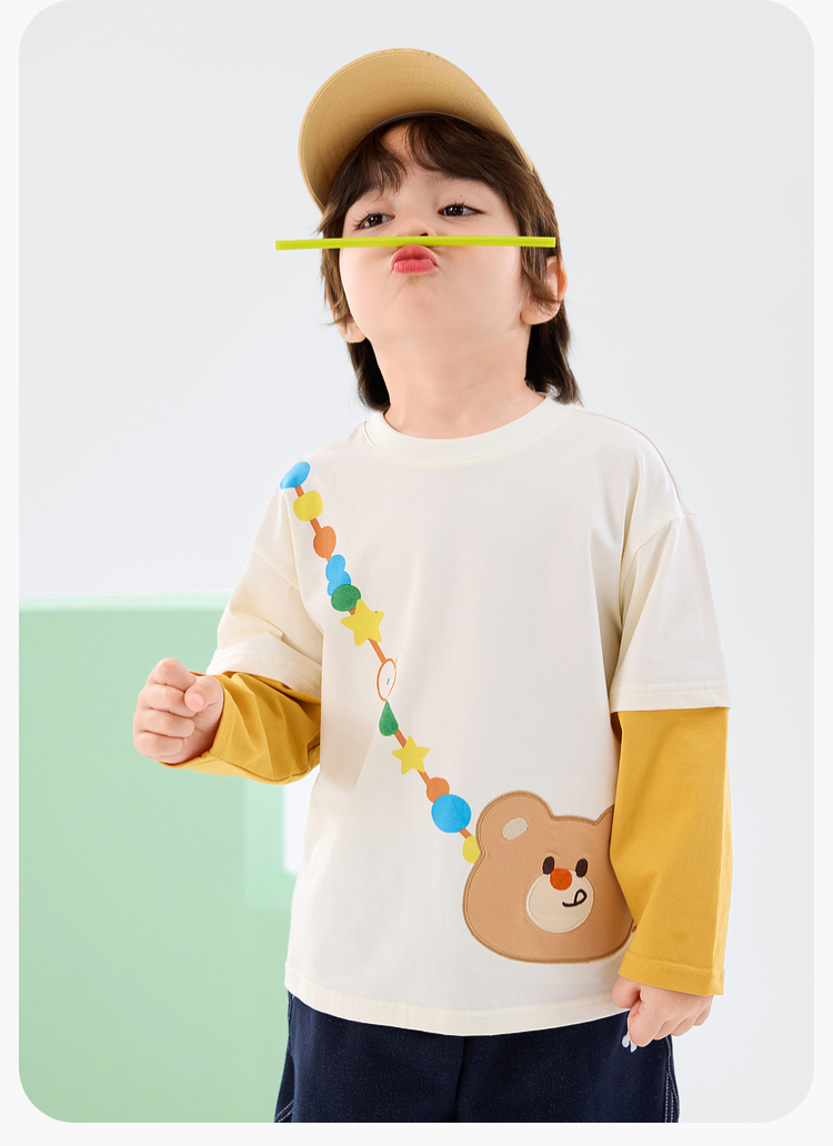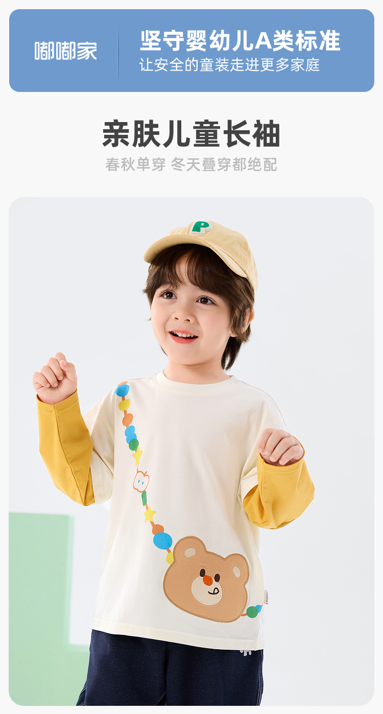 【7A抑菌】嘟嘟家儿童T恤男童上衣女童打底衫女孩衣服春装新款D6ATX108