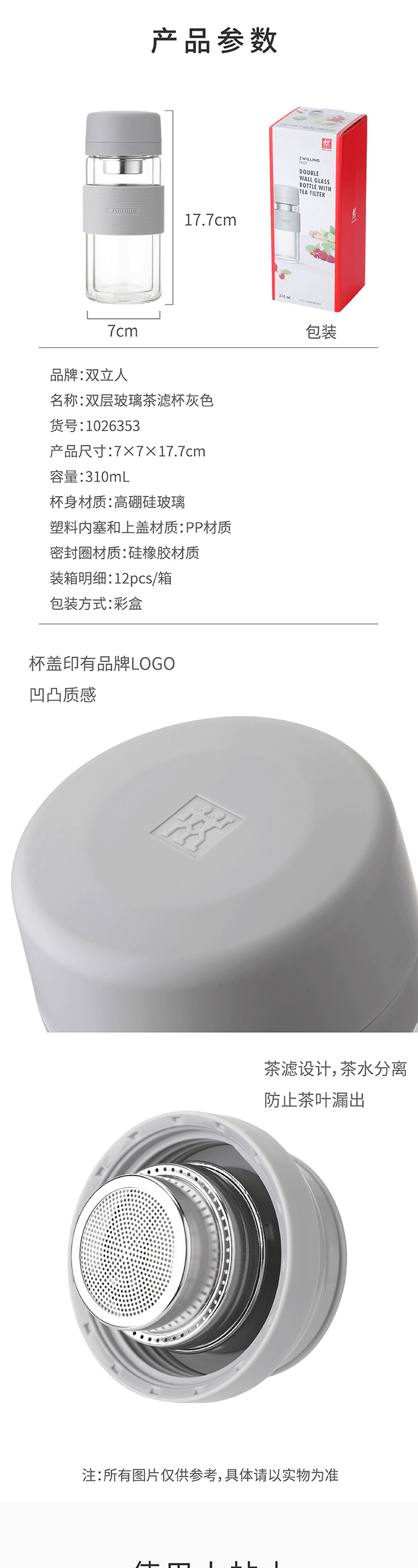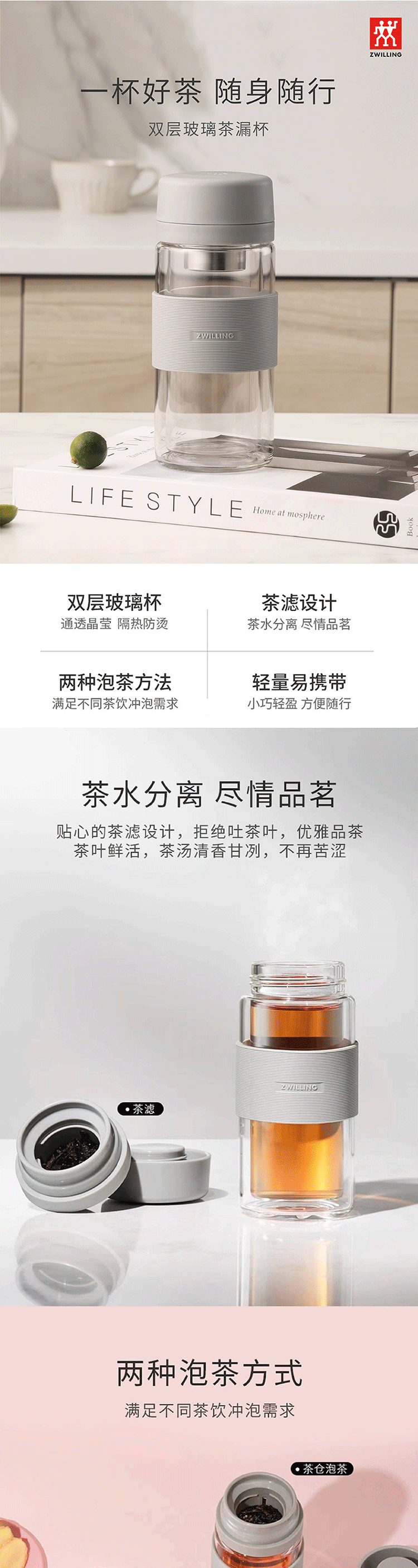 双立人 双层玻璃茶滤杯灰色1026353