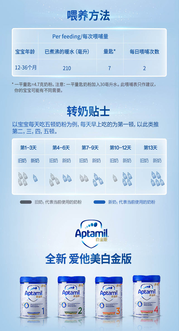 英国Aptamil爱他美白金版婴儿配方奶粉3段1-3周岁 800g
