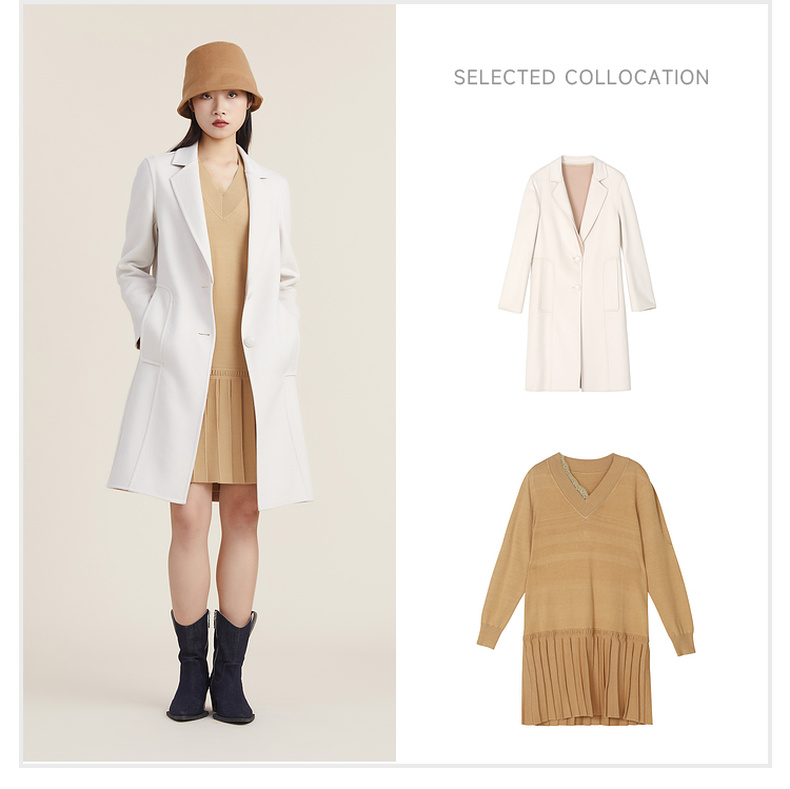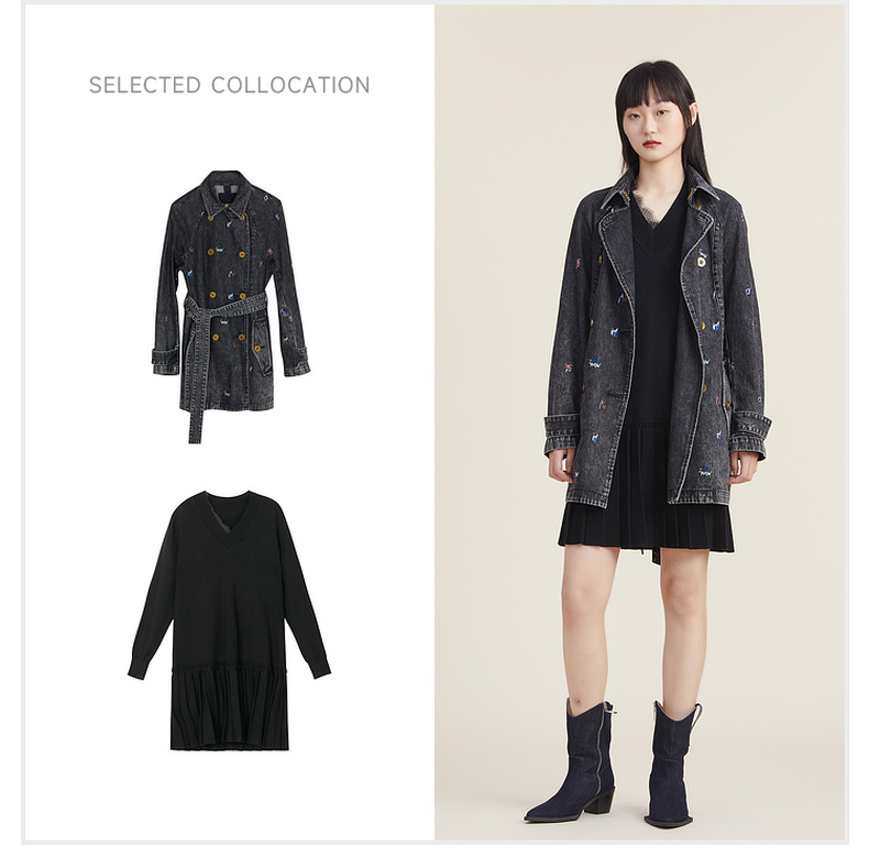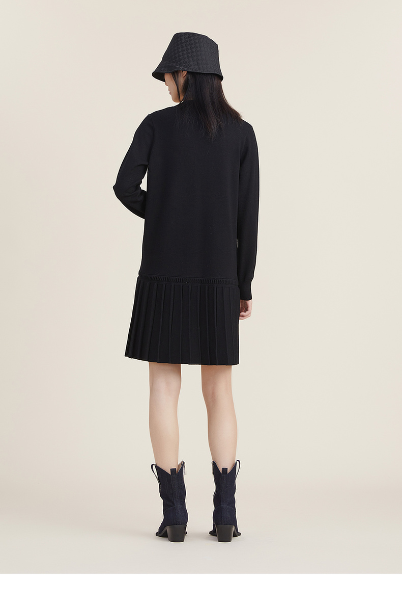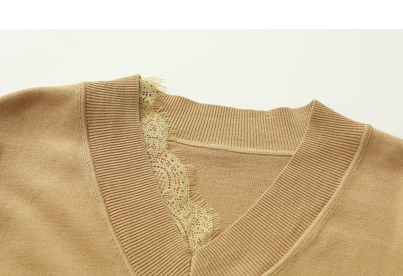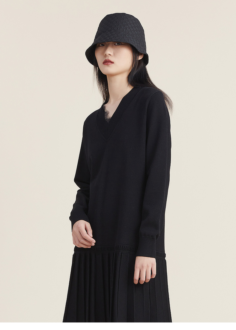 谜底2022秋新款套头V领蕾丝拼接中长款宽松针织连衣裙女223MZ1310