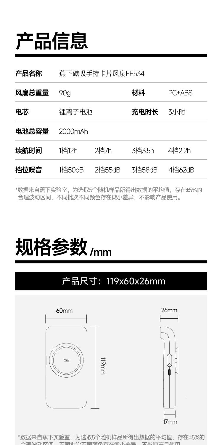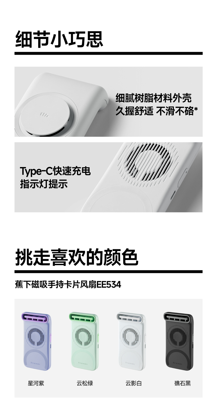 蕉下磁吸手持卡片风扇EE534