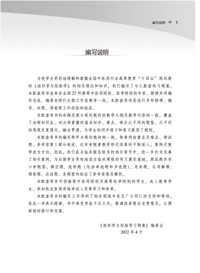 组织学与胚胎学习题集 汪涛 著 全国中医药行业高等教育十四五规划教材配套用书 中国中医药出版社