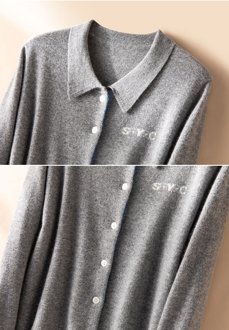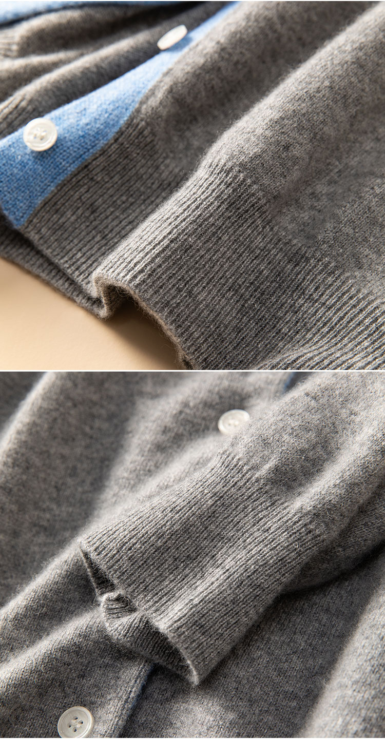 100%Baby小山羊绒~POLO领拼色字母羊绒开衫外套BABY25062