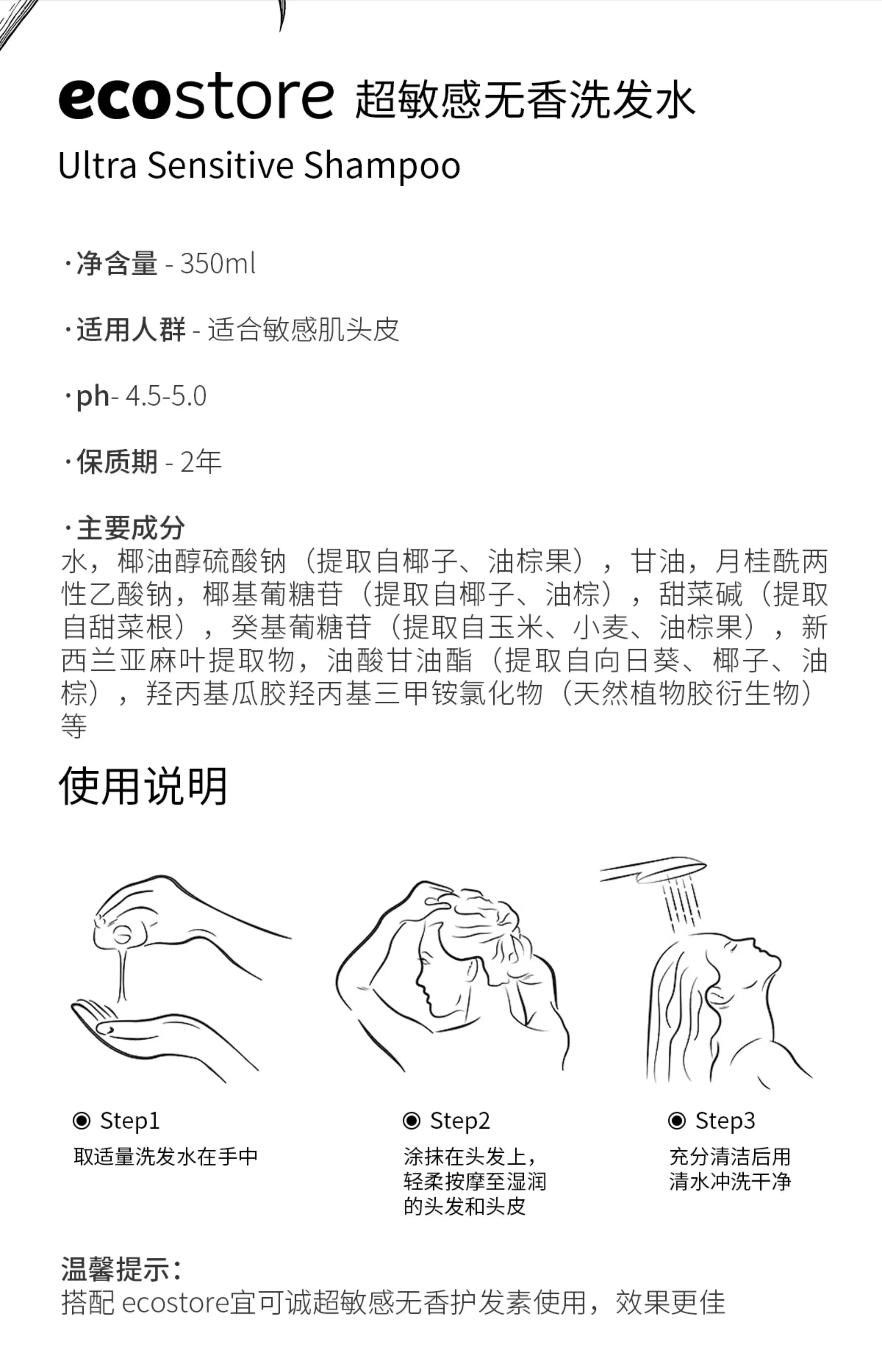 Ecostore 宜可诚 超敏感无香型洗发水 350ml