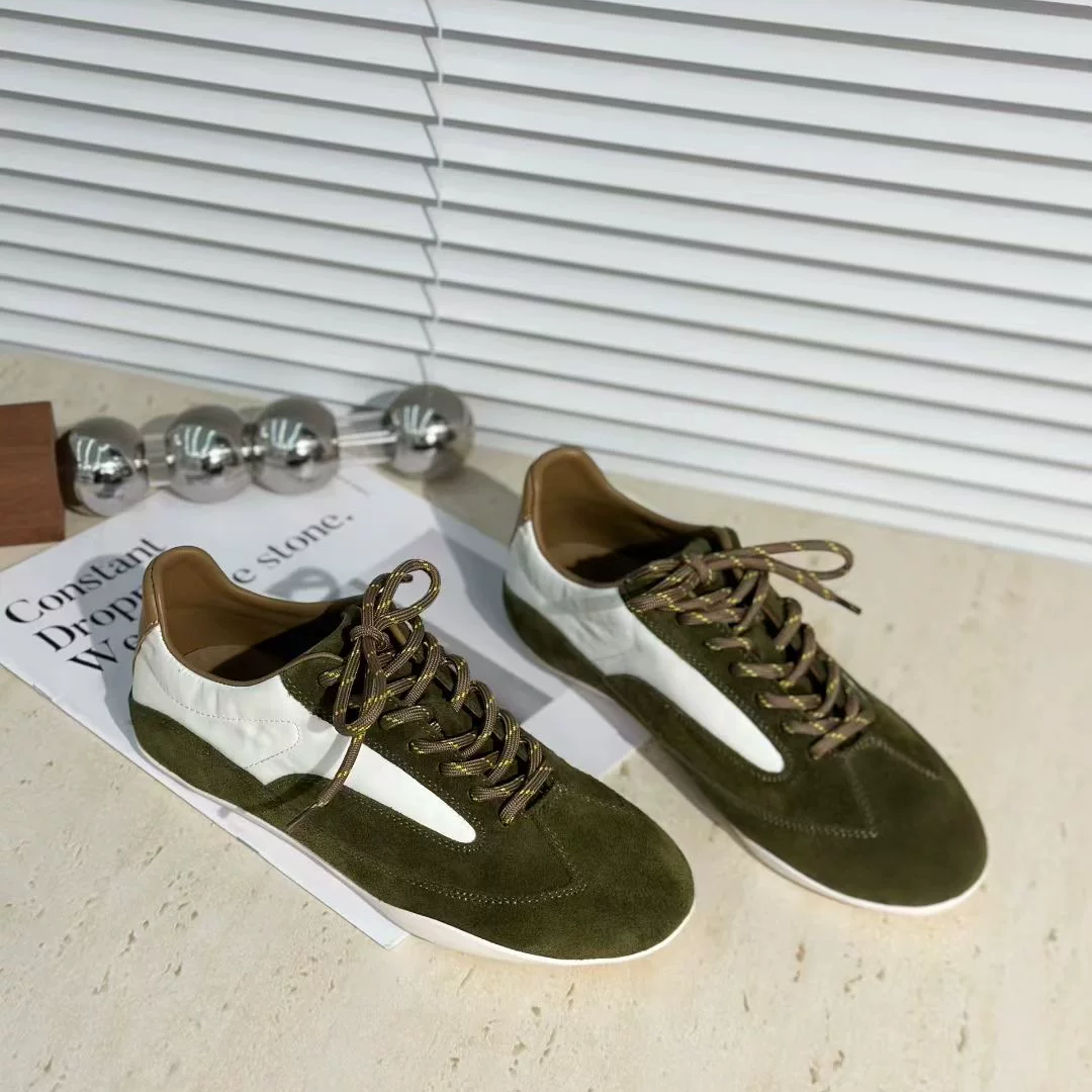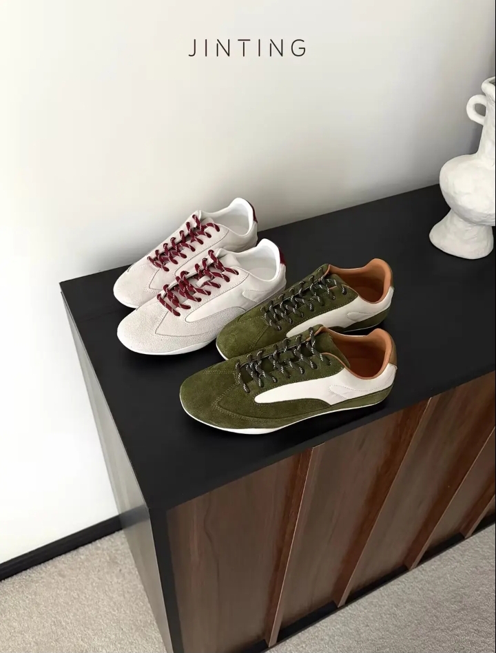 老钱风高级感【拼色平底德训鞋休闲简约运动鞋】精选高丝光牛反绒🐂自带高级哑光质感,复古氛围拉满☁️内里羊皮包裹,脚感如云朵