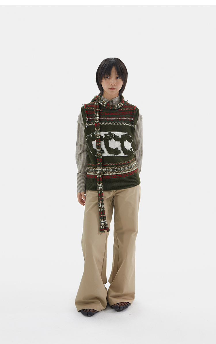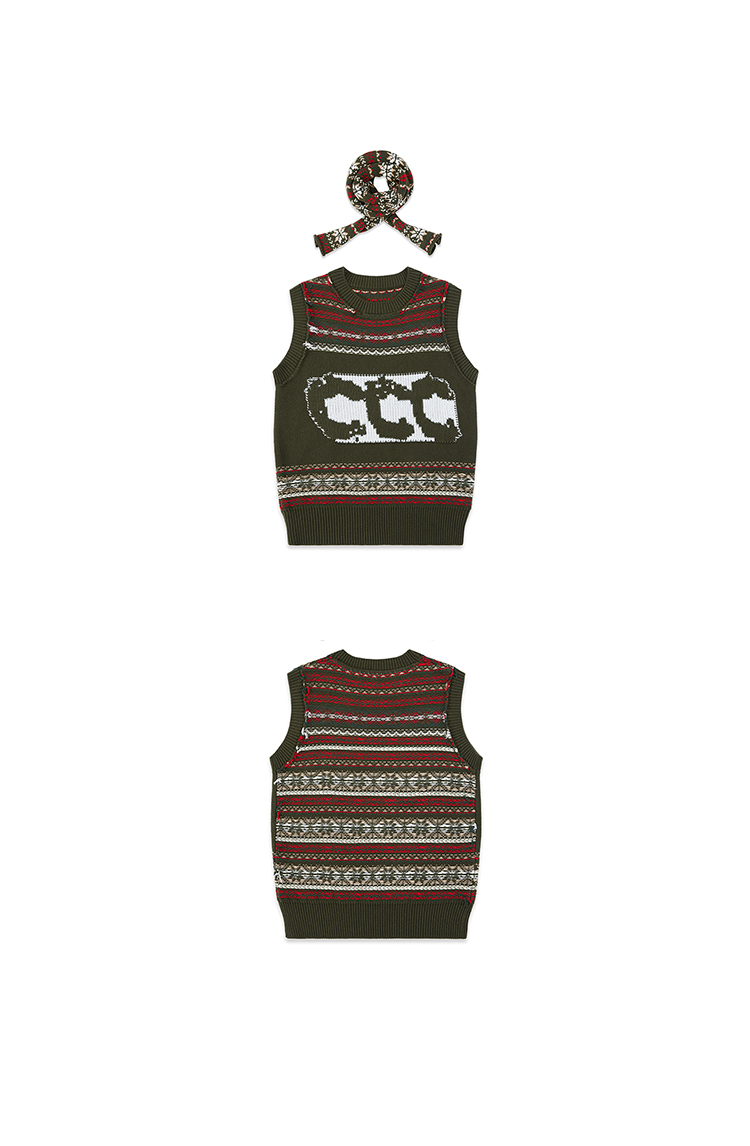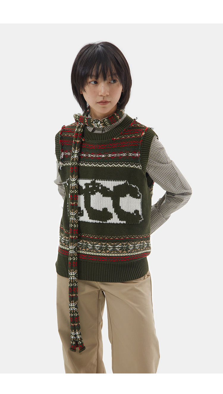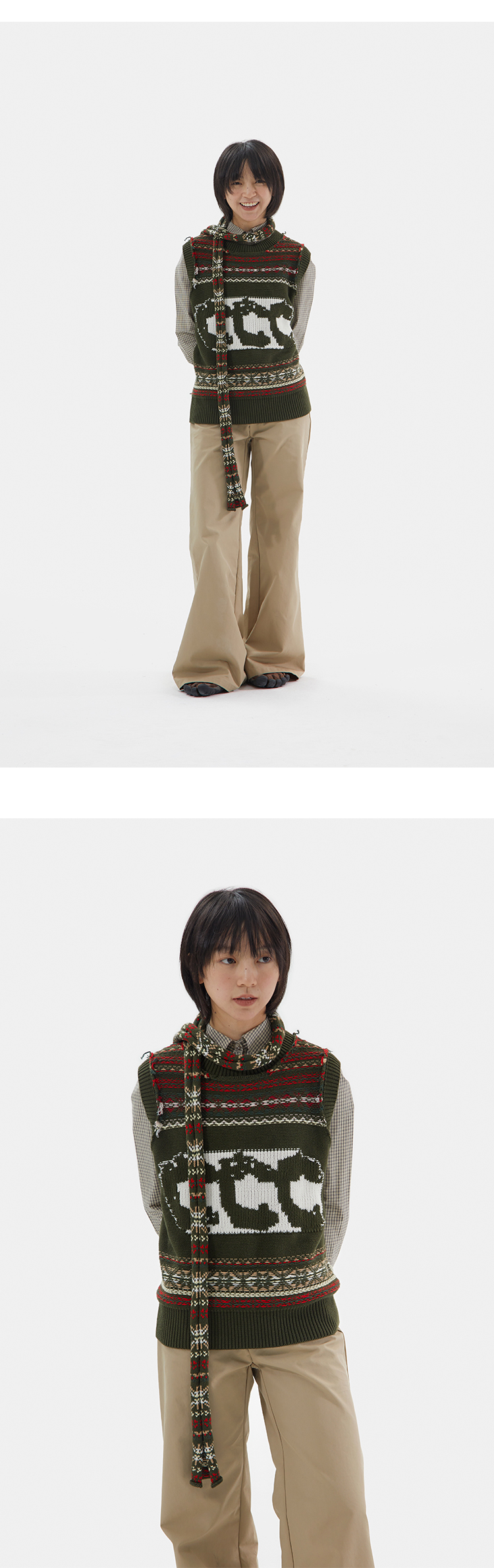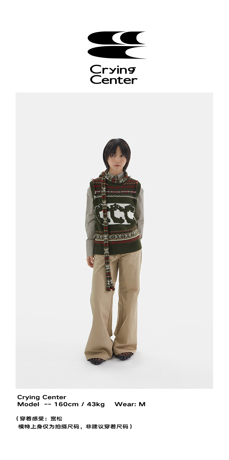 CryingCenter 杉树绿费尔岛毛织马甲与围巾 哭喊中心