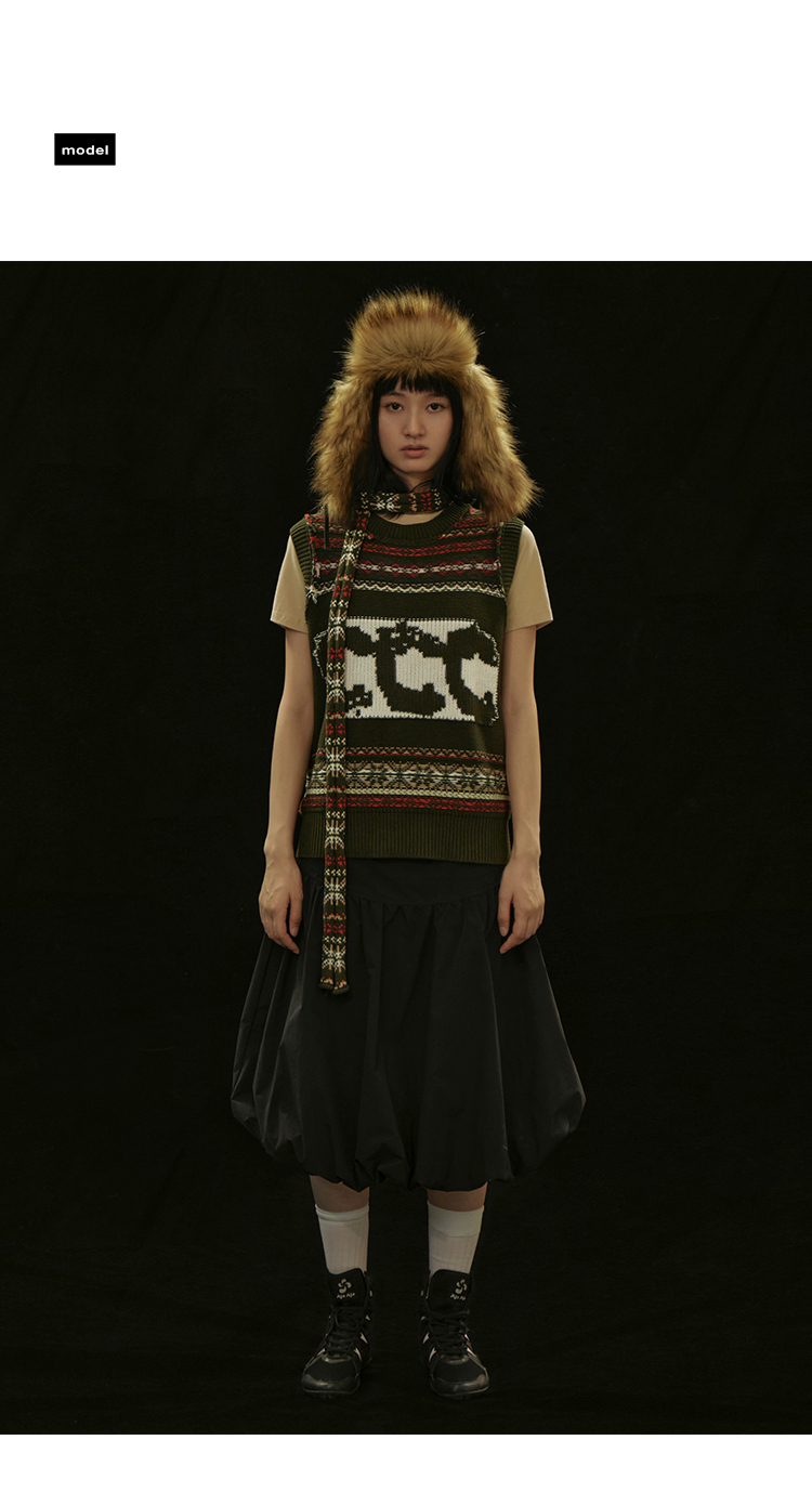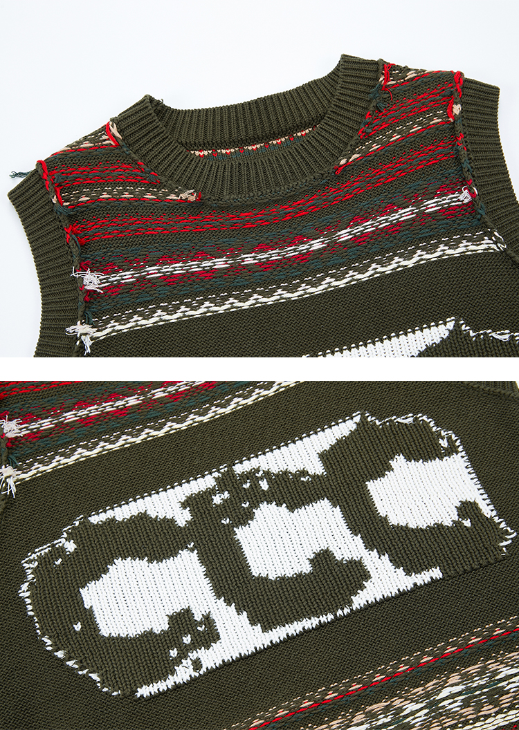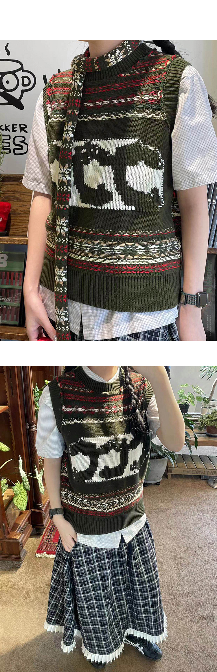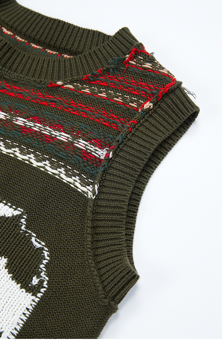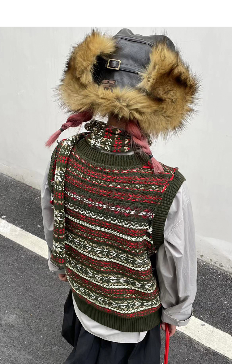 CryingCenter 杉树绿费尔岛毛织马甲与围巾 哭喊中心