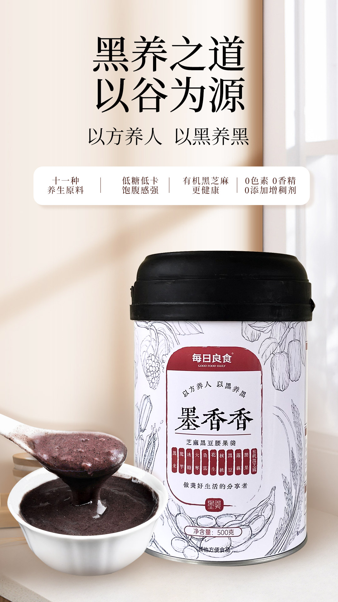 【品名/规格】【每日良食】墨香香-芝麻黑豆腰果羹 500g*1罐 、500g*2罐