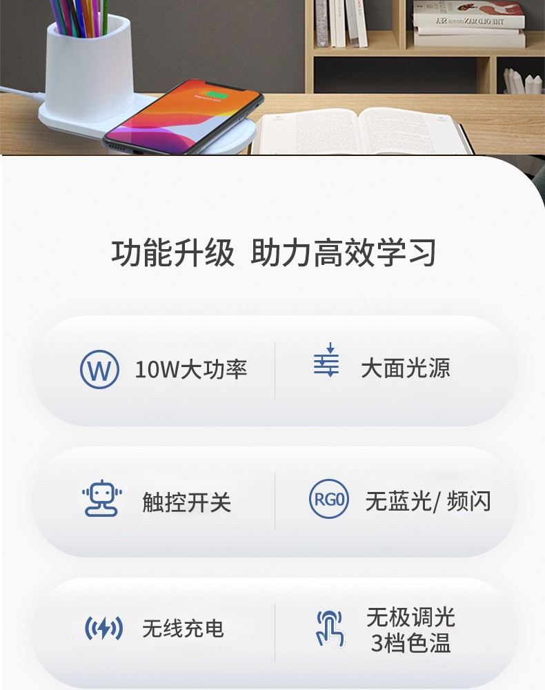 沃品 台灯 无线充电多档调节AA级led灯 TD15
