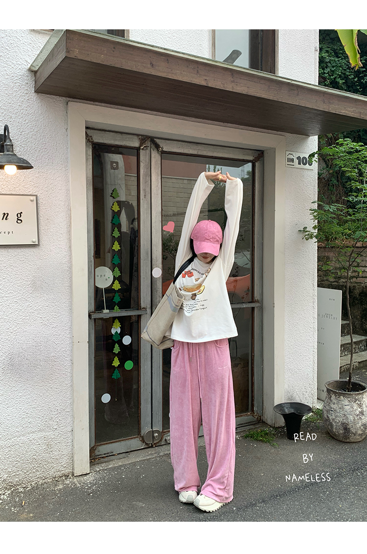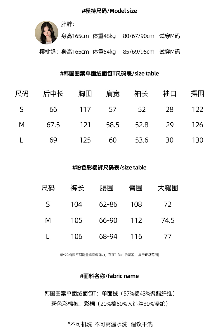 Read Nameless /韩国图案单面绒面包T+粉色彩棉裤 2024/9/19