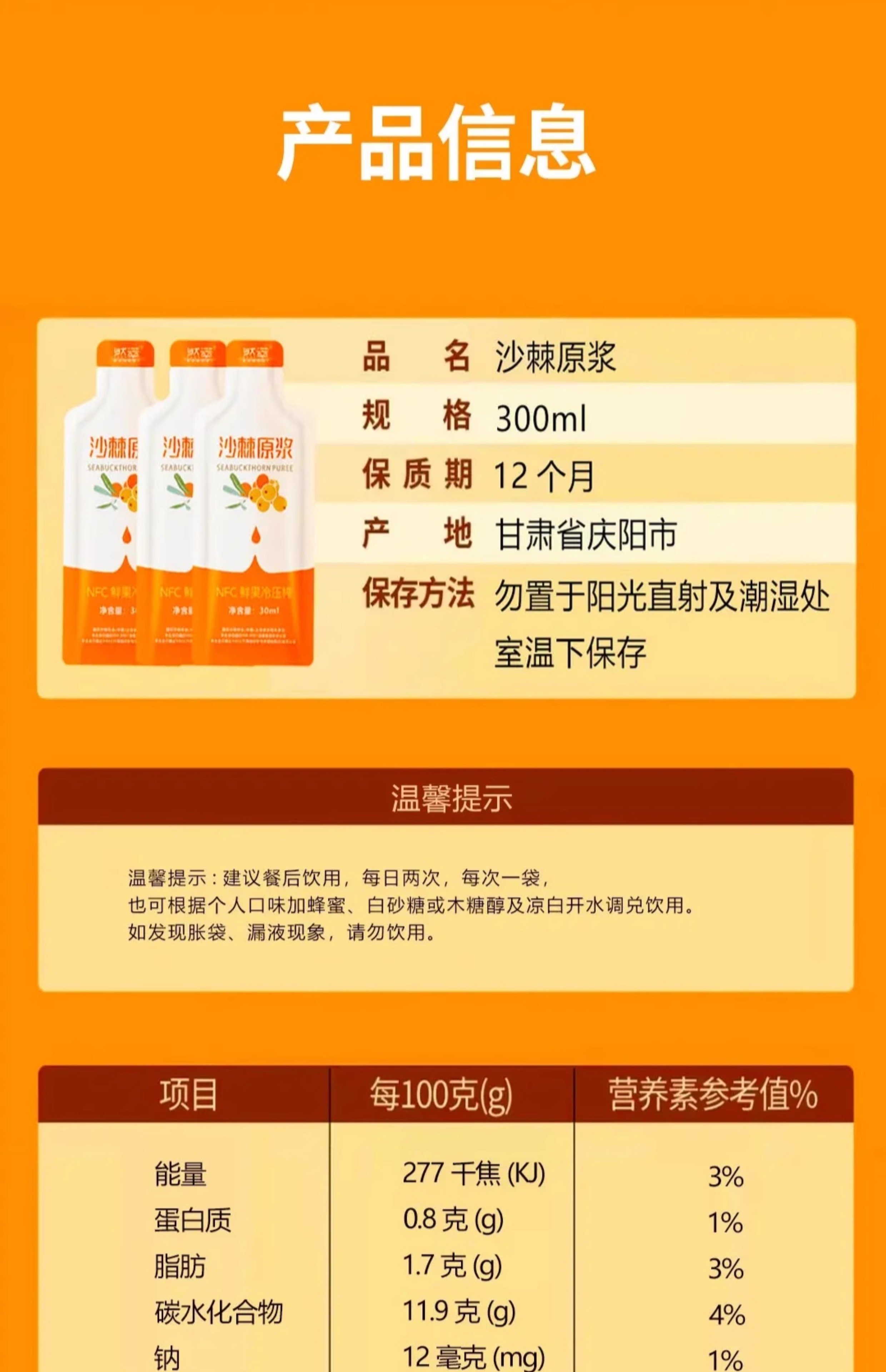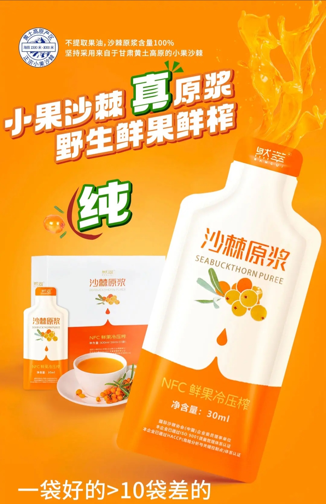 敦煌【沙棘原浆30ml*10袋】甘肃敦煌特产沙棘果原浆零添加两盒送礼袋