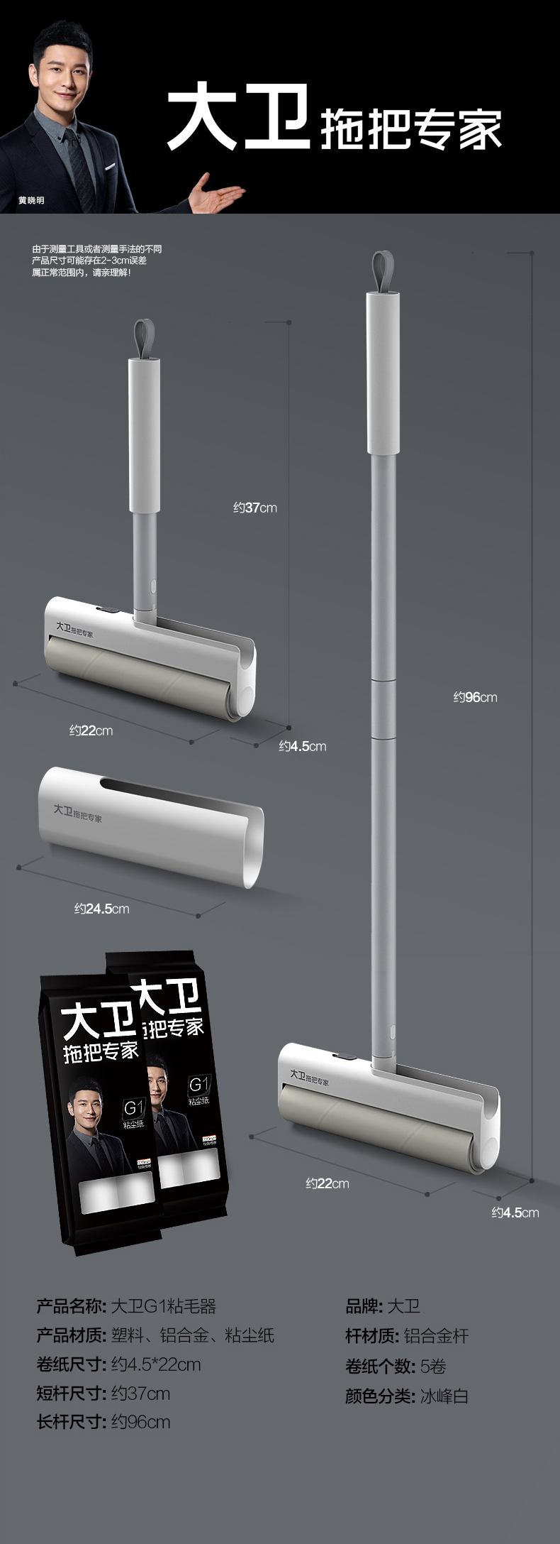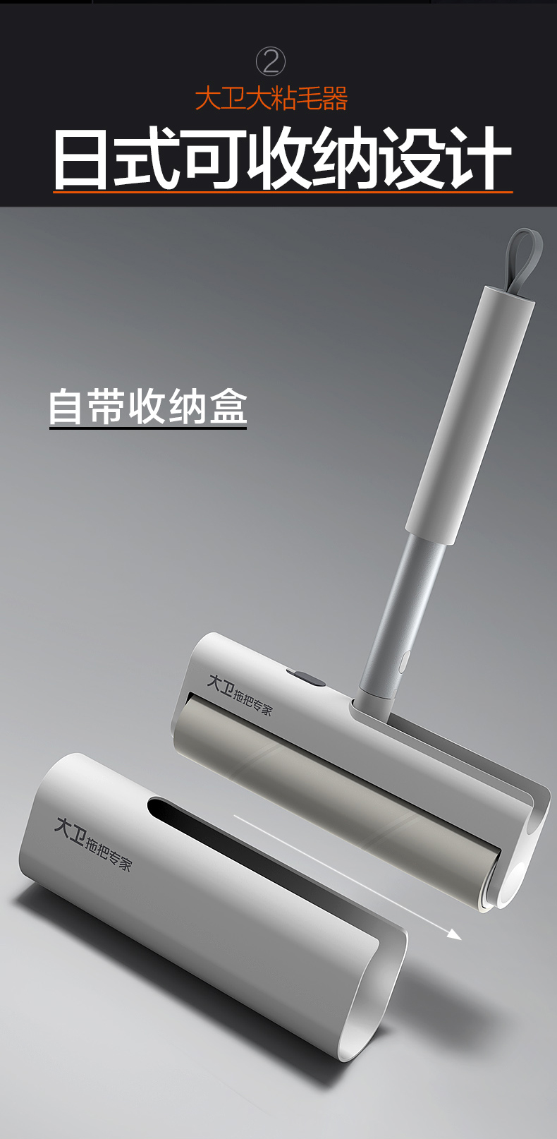 大卫粘毛器可撕式滚筒日式可收纳可折叠除毛器套装5卷纸带收纳盒G1大卫G1 粘毛器 (短款)