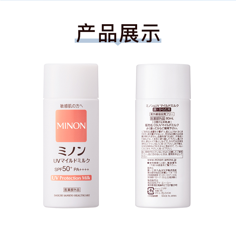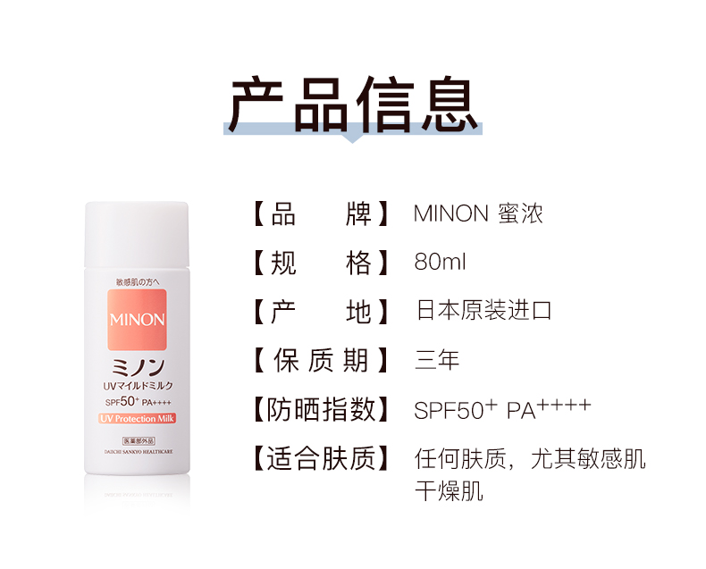 Minon 蜜浓 纯物理防晒霜 80ml 敏感肌专用
