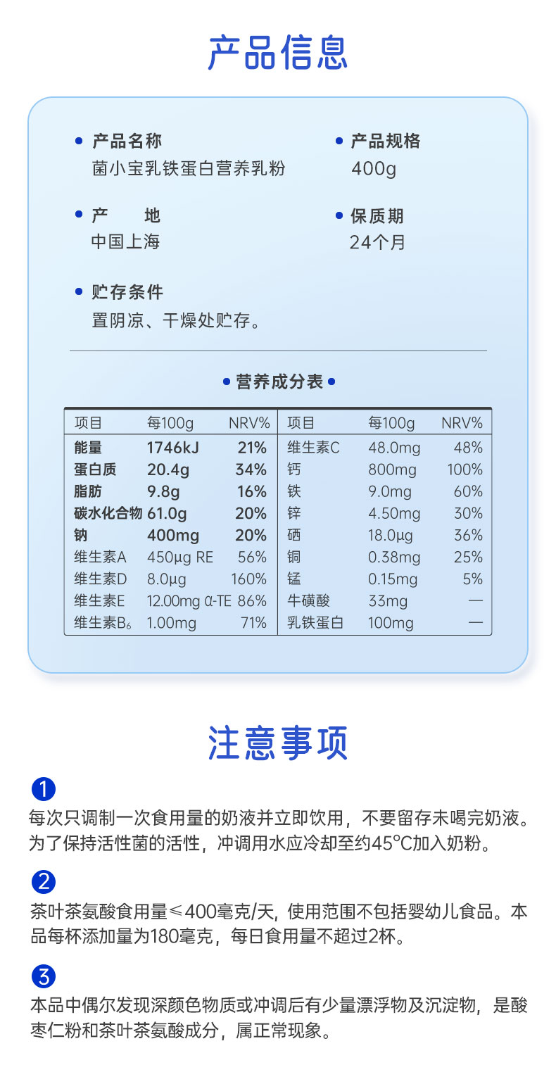 【官方推荐】菌小宝乳铁蛋白营养乳粉 400g/罐