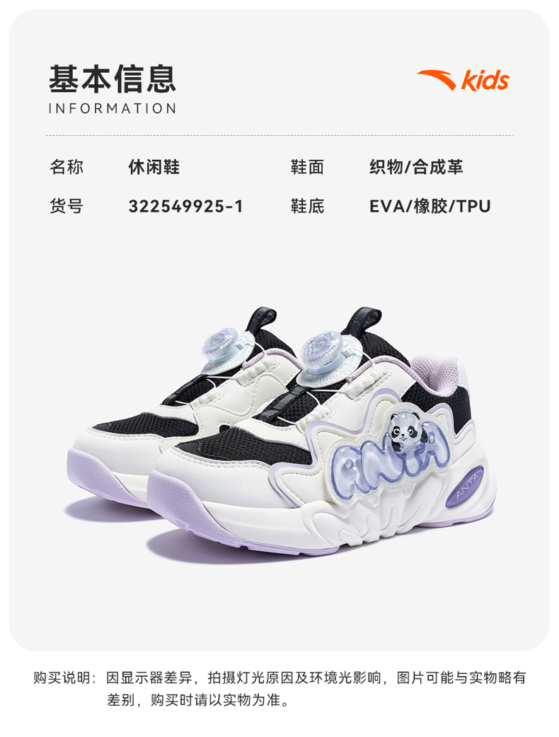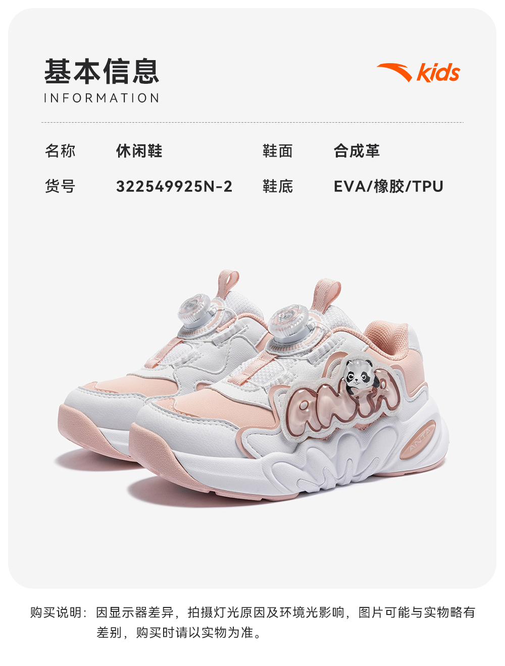 墩墩鞋丨安踏儿童运动鞋25冬季新款女小童轻弹厚底老爹鞋旋钮童鞋322549925