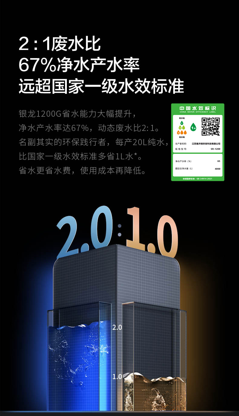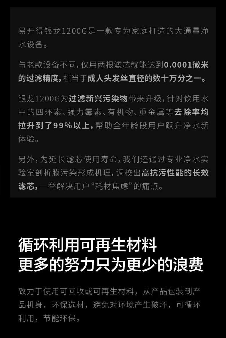 易开得生肖系列—银龙1200G大通量台下式纯水机RO反渗透净化一体机