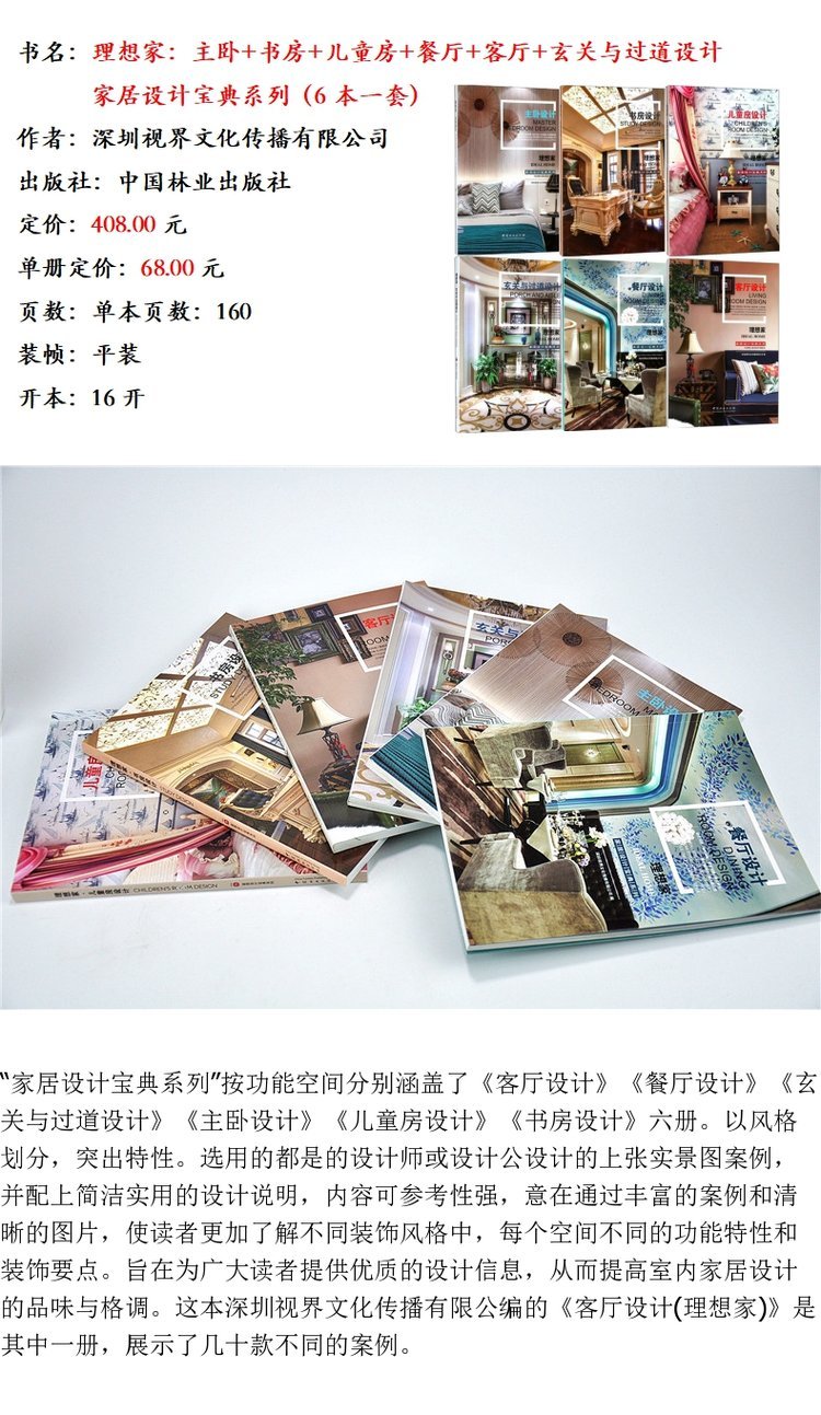 理想家 主卧+书房+儿童房+餐厅+客厅+玄关与过道设计 6本一套 家居设计宝典系列 室内空间装饰装修设计案例书 中国林业出版社