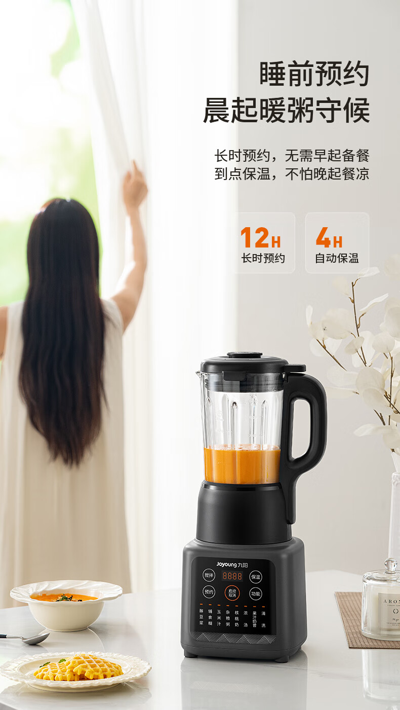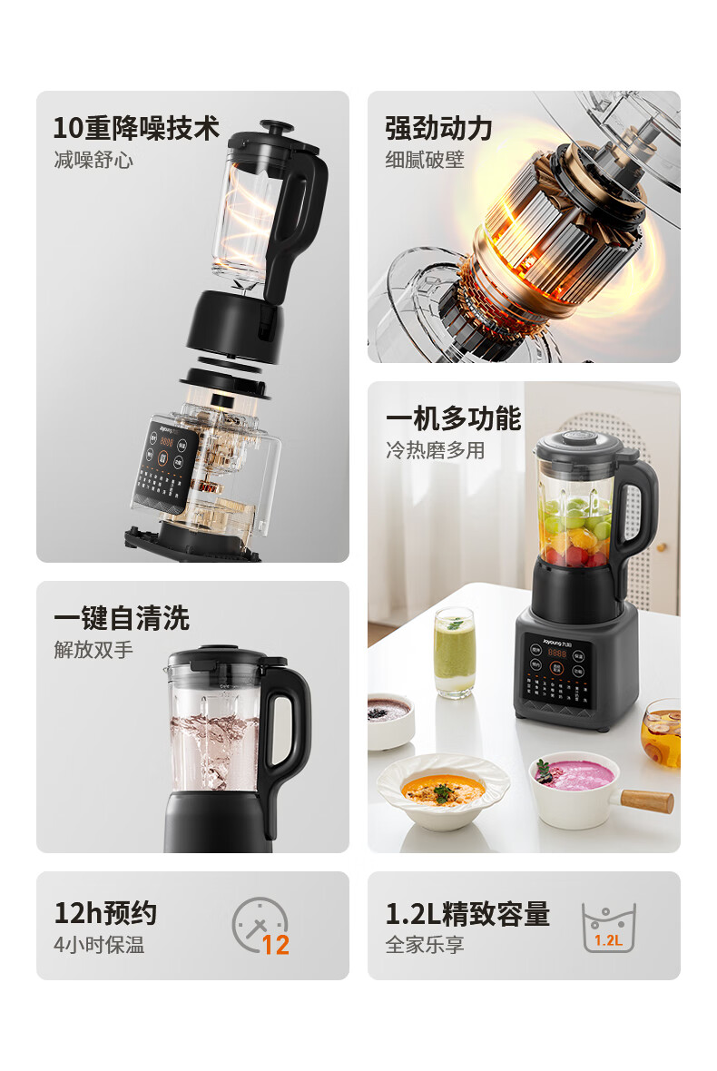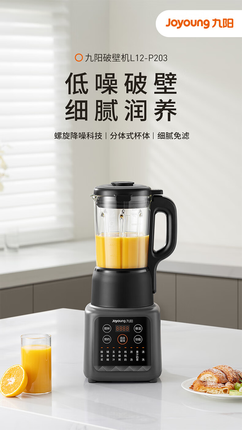 积分免费兑:九阳新款家用轻音全自动1.2L多功能预约豆浆机2-3人榨汁机料理辅食机五谷杂粮破壁机P203政府补贴