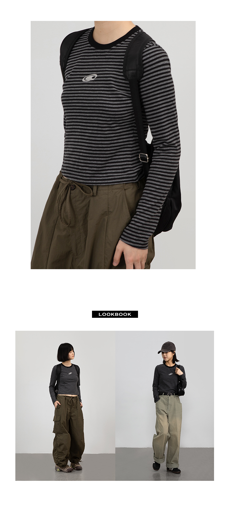 CryingCenter 美式复古灰条纹logo印花 修身显瘦长袖T恤 哭喊中心