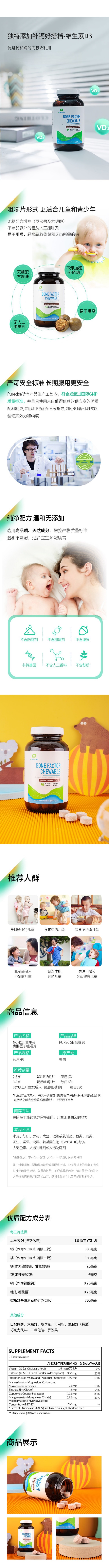 【儿童生长骨骼因子咀嚼片】 Bone Factor 矿物质形式钙镁综合咀嚼片 非化学合成 90片 可可味钙镁咀嚼片 儿童长高骨骼全面营养 复合专利骨骼因子矿物质MCHC