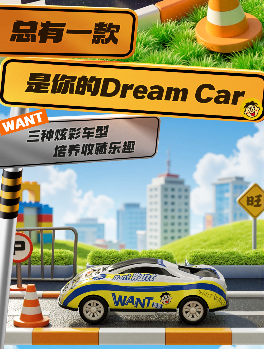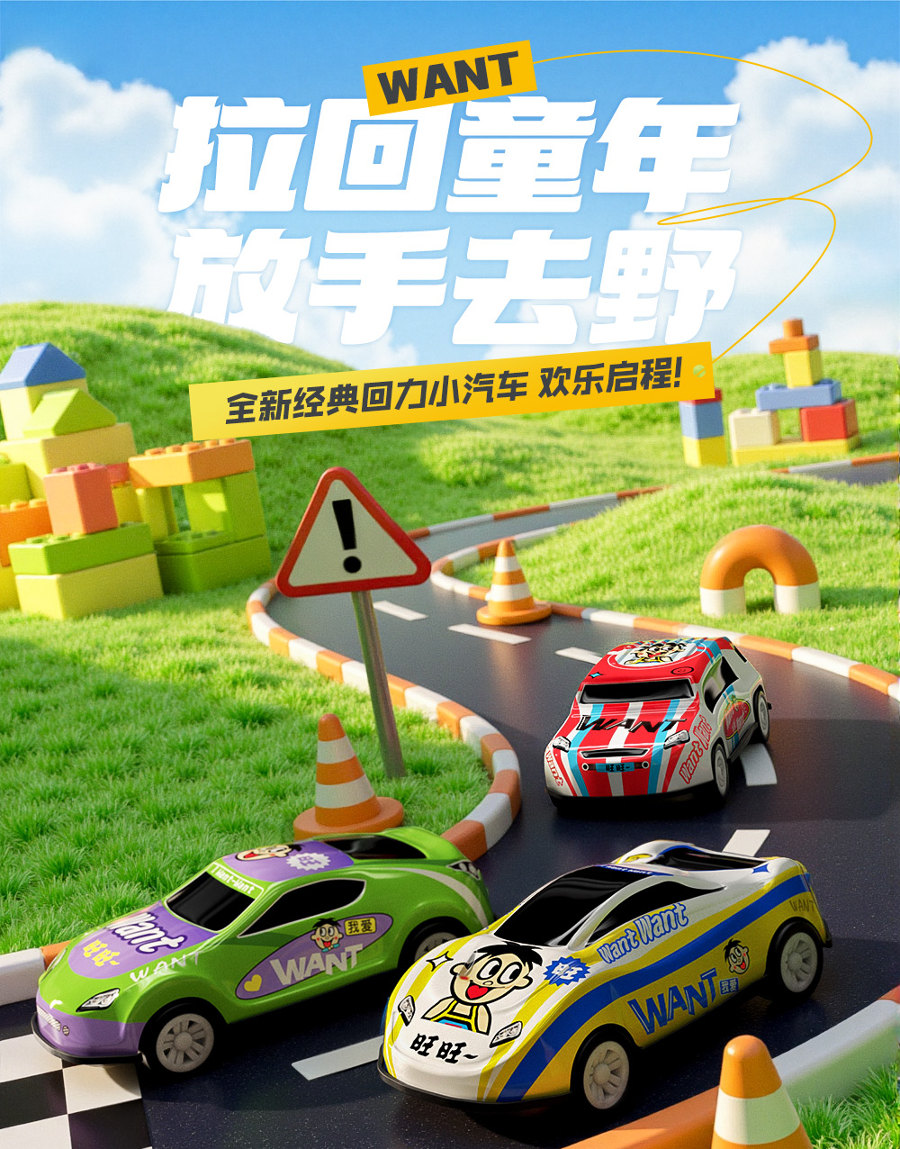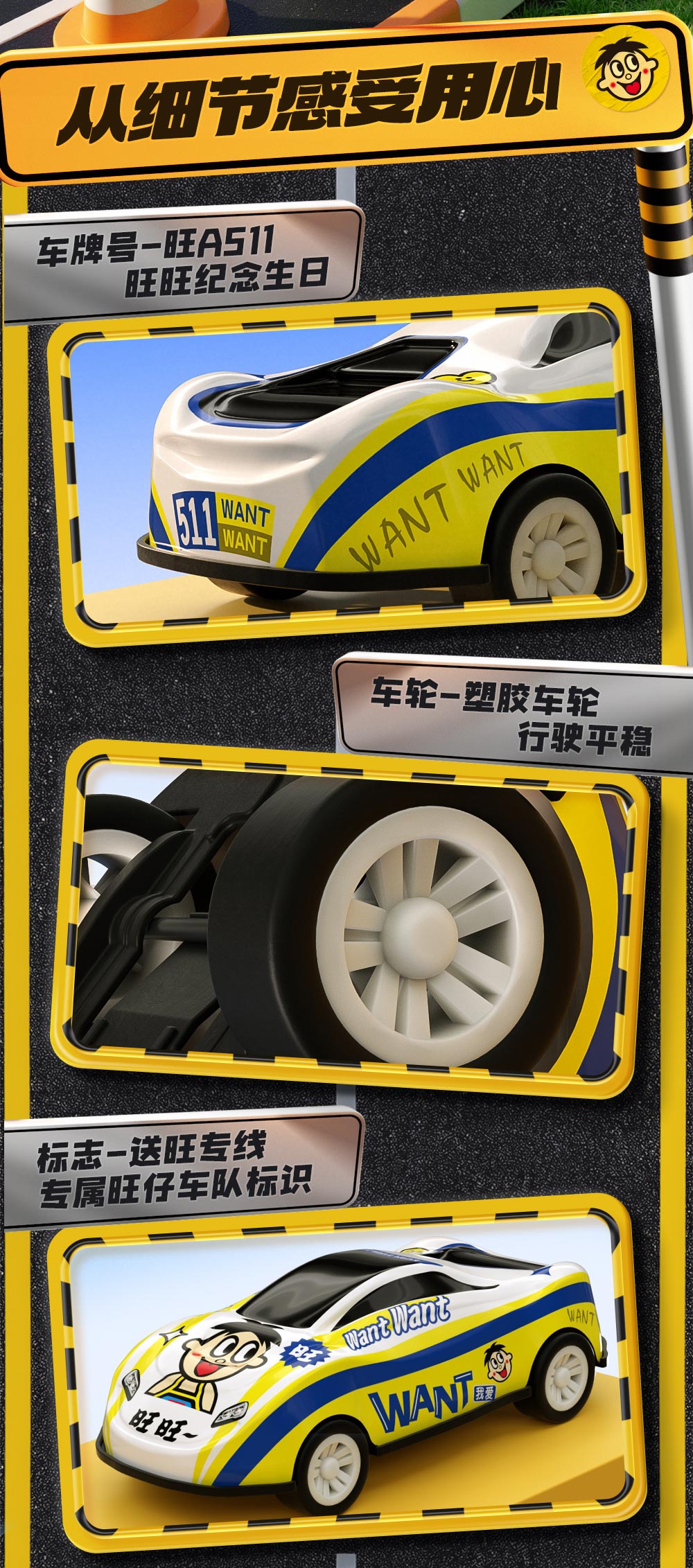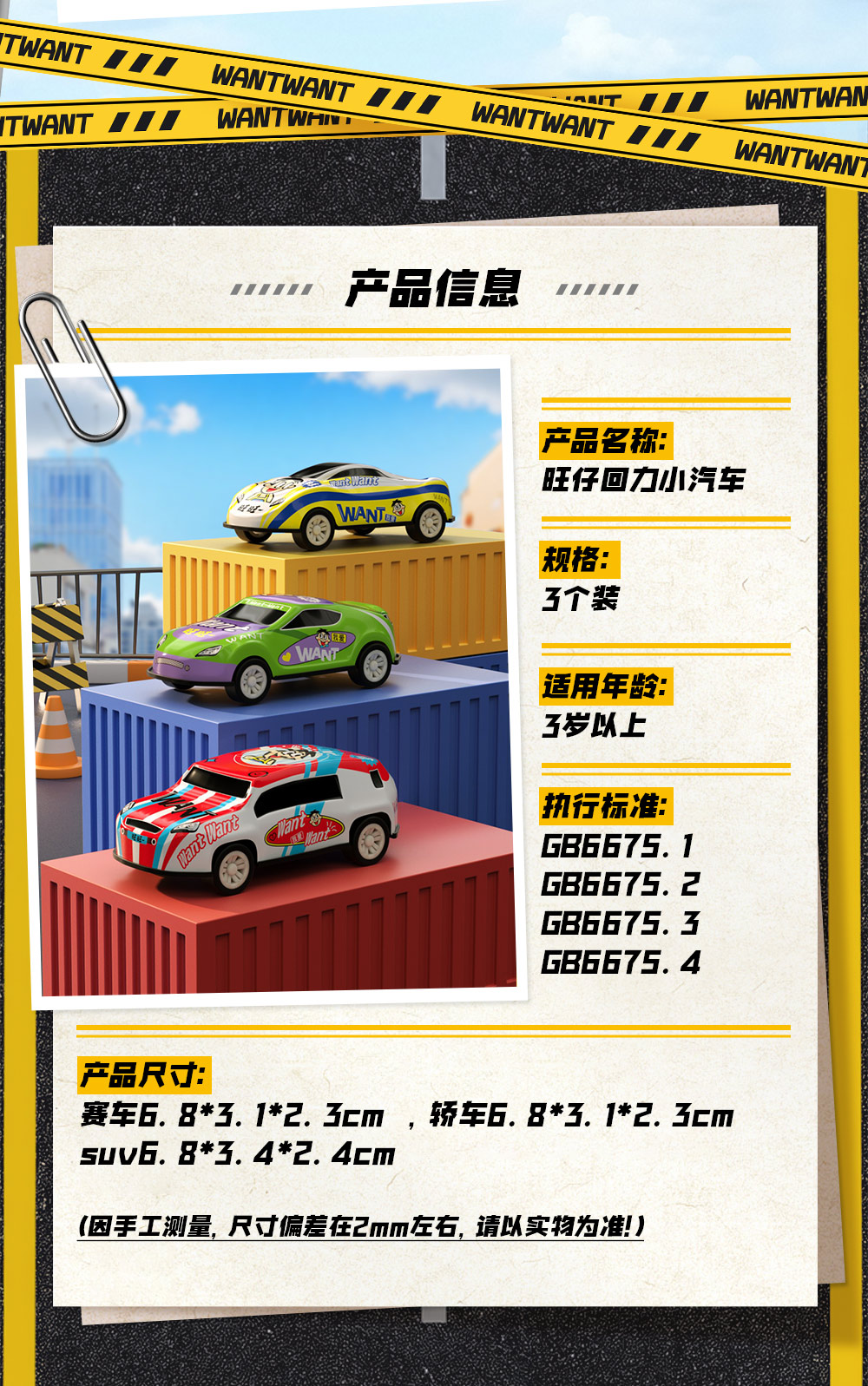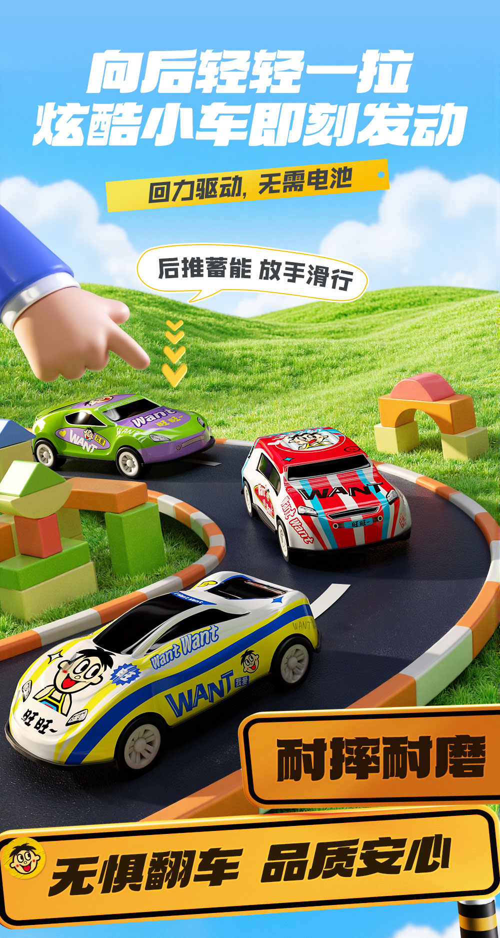 旺旺 回力驱动耐摔耐磨 旺仔回力小汽车 3个装