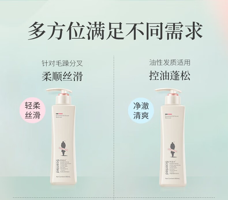 阿道夫 轻柔丝滑洗发水680ml+植萃精华护发素680ml