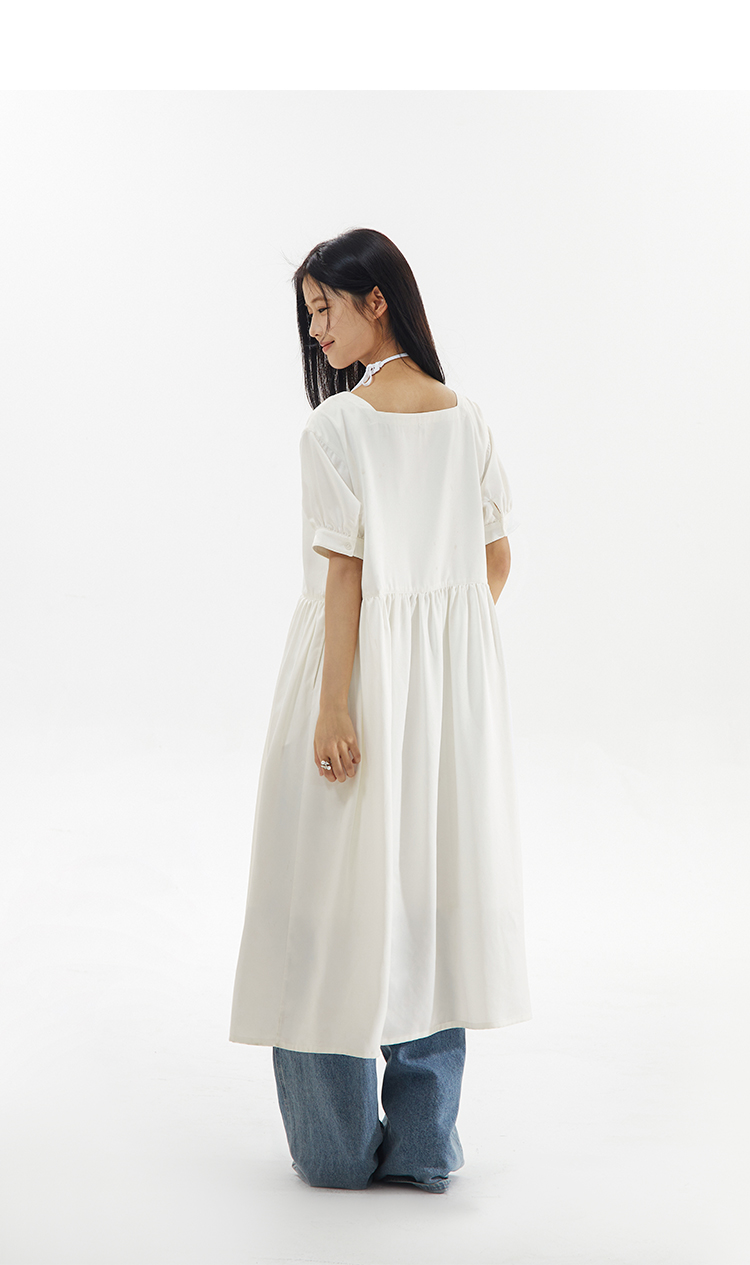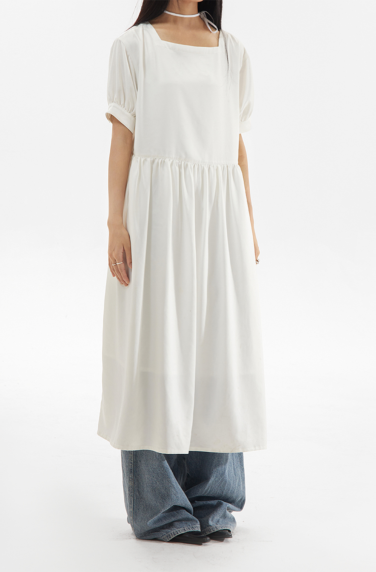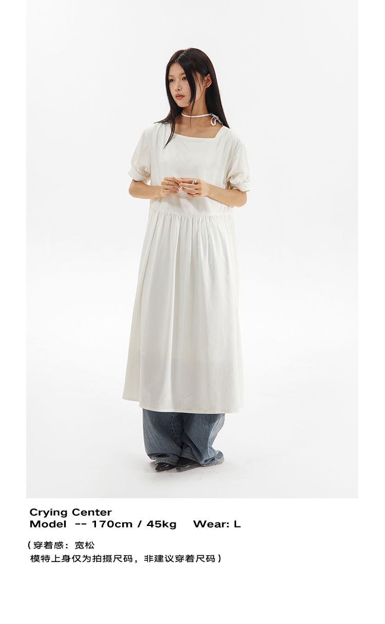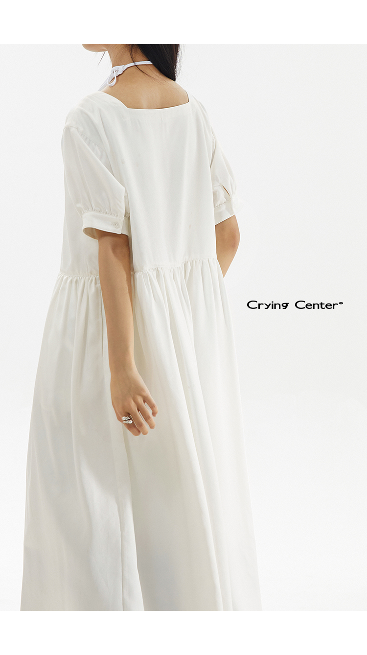 CryingCenter 方领白色简约休闲连衣长裙 哭喊中心