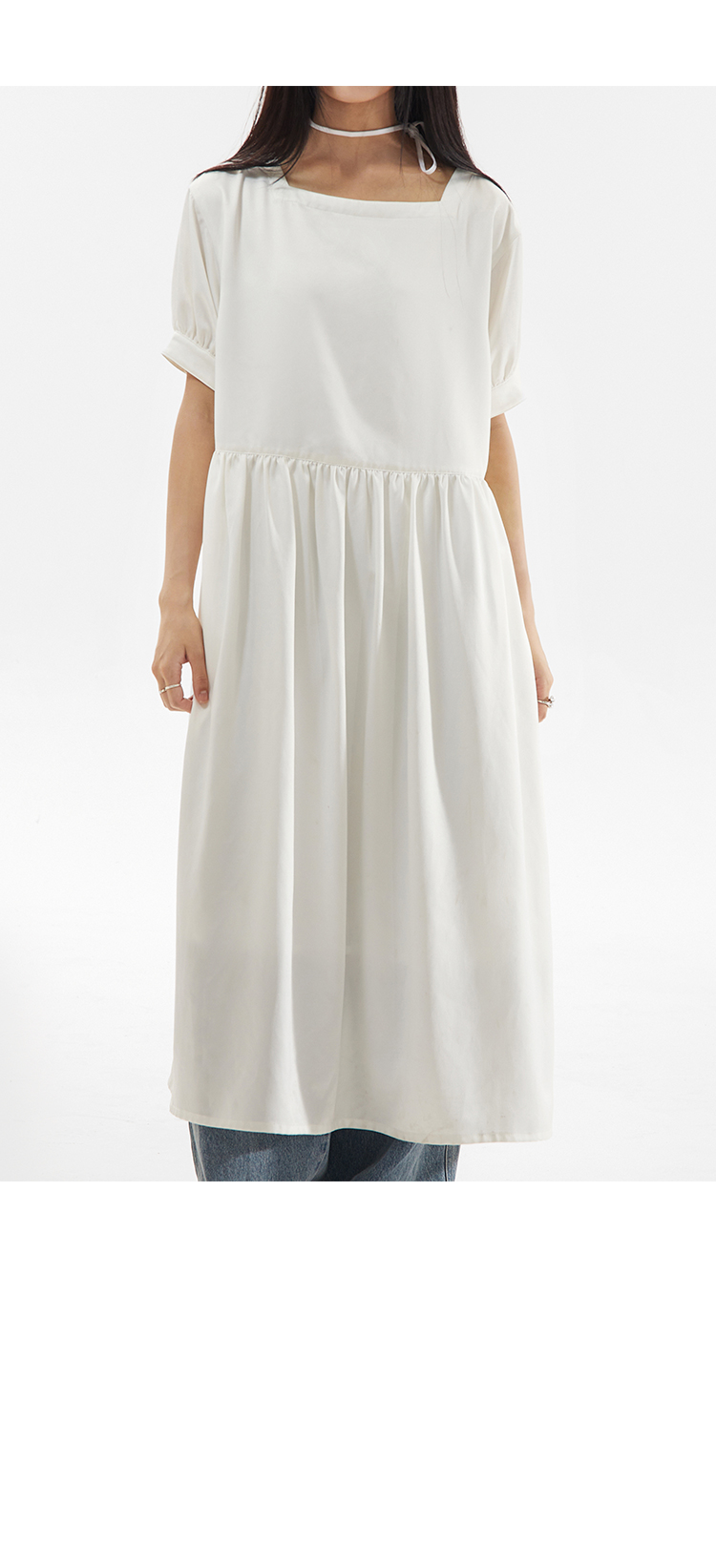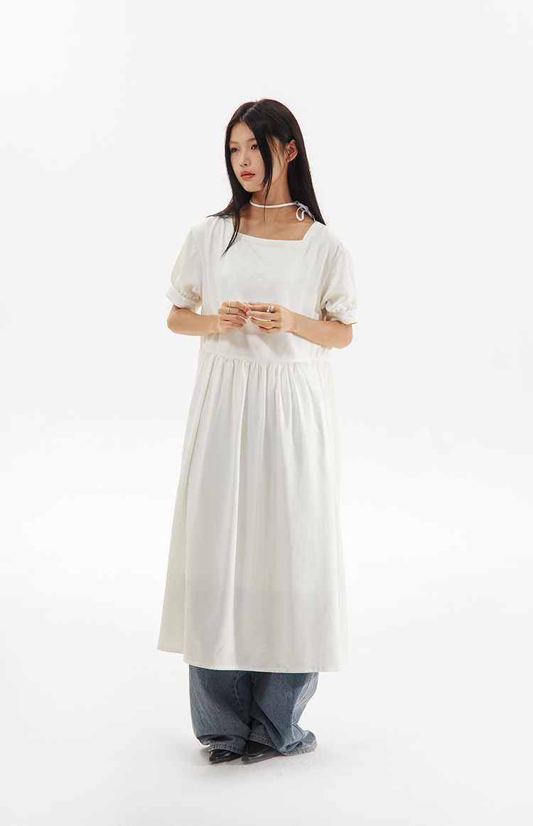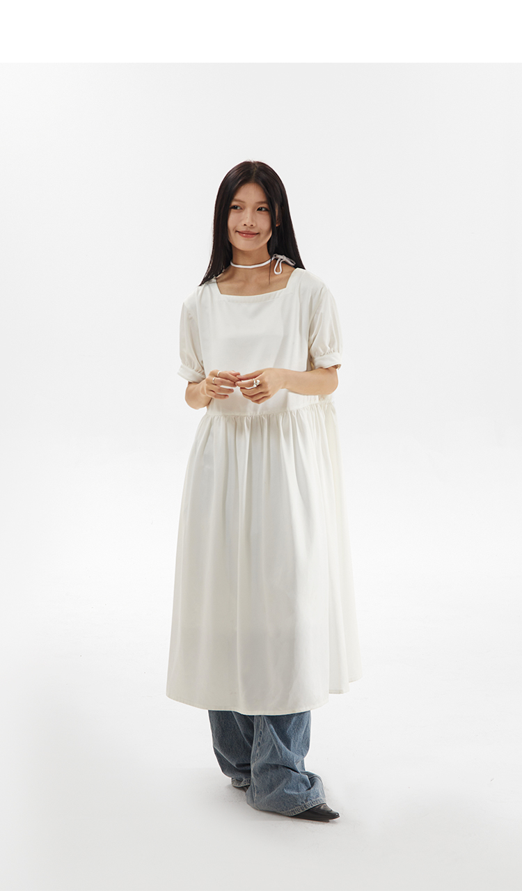 CryingCenter 方领白色简约休闲连衣长裙 哭喊中心
