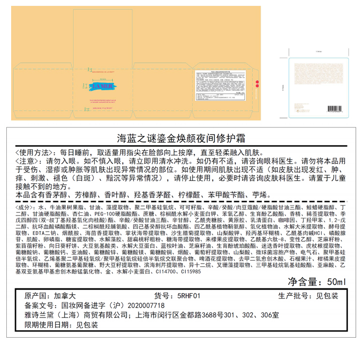 海蓝之谜鎏金焕颜夜间修护霜50ml