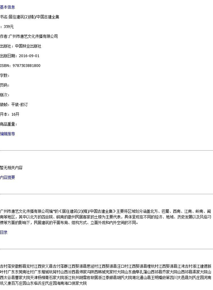 居住建筑2中国古建全集8180中国林业特出版社正版畅销书籍