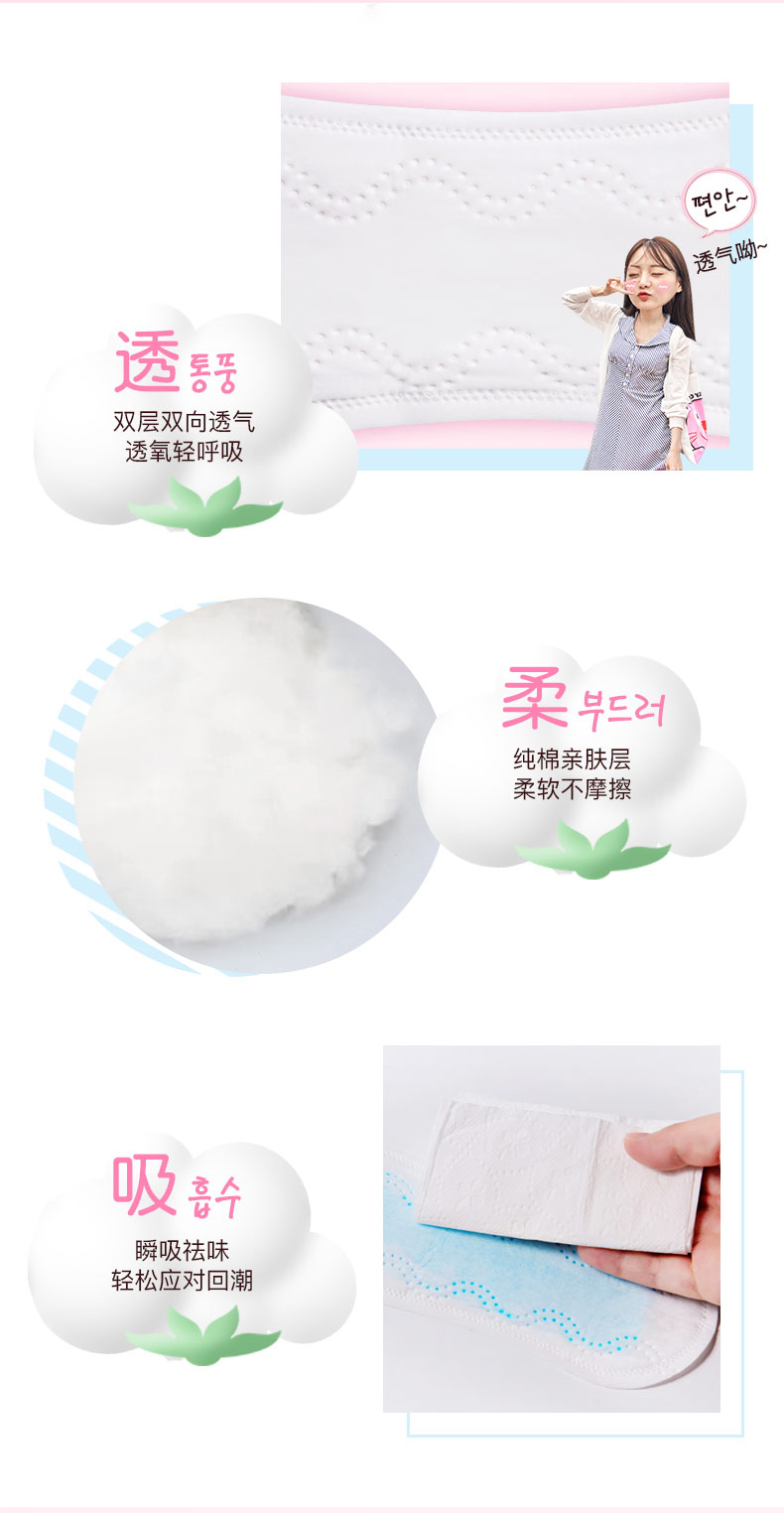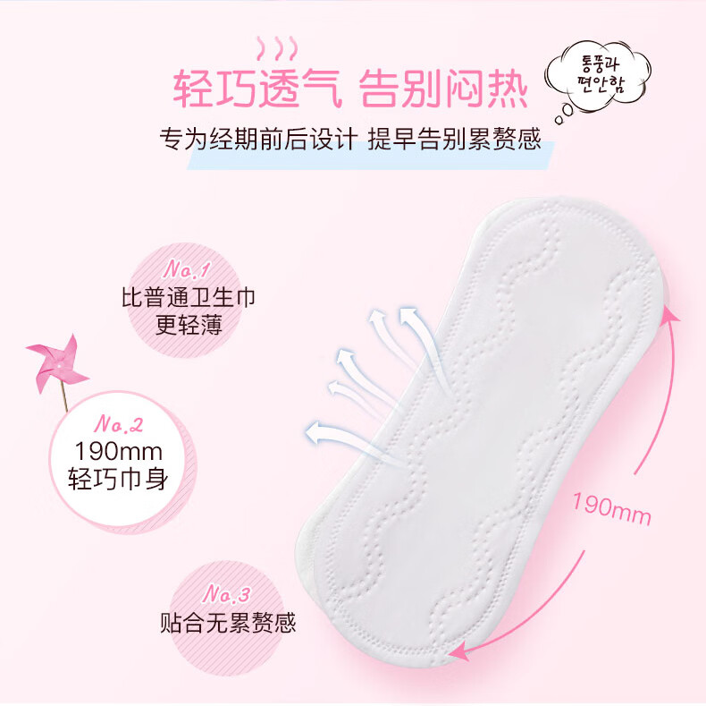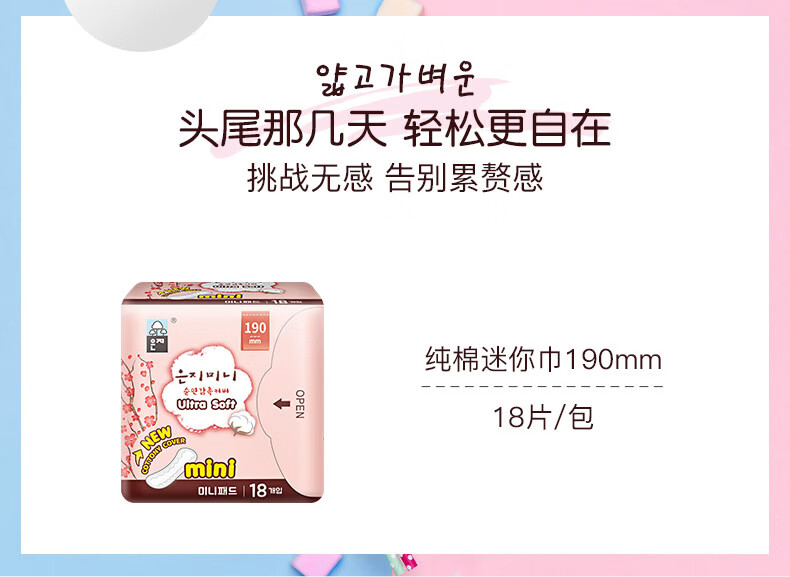 【2包装】Eunjee恩芝韩国进口绵柔无护翼姨妈巾迷你型日用卫生巾190mm*18片/包