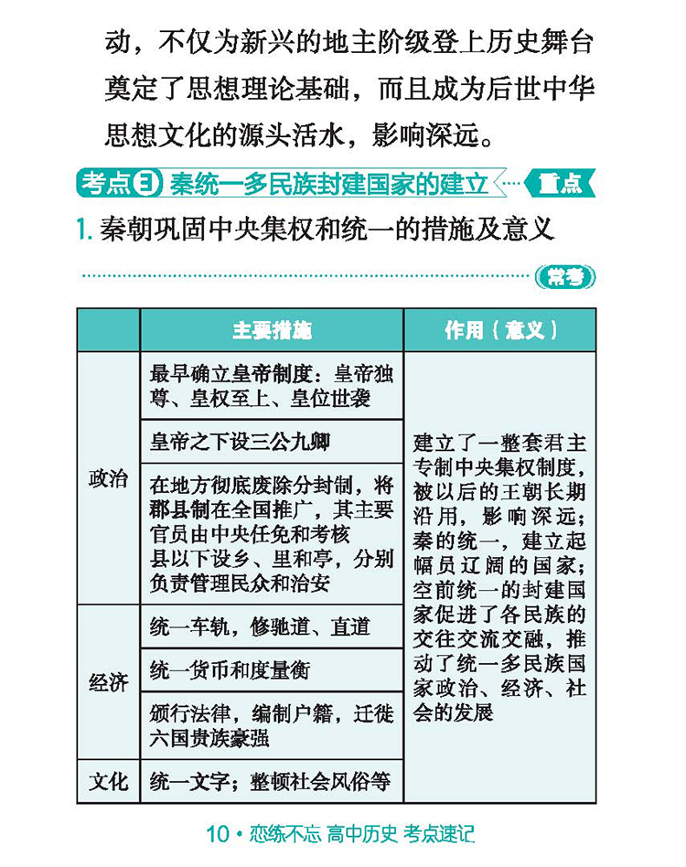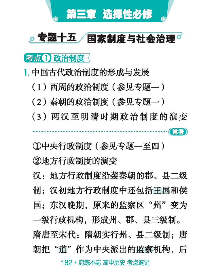 在目录设置上,本书按照统编高中历史学科的教材章节来设置,分为章—专题—考点三级,这样既能照顾正在学习的学生,也方便进入复习阶段的学生参照教材使用。