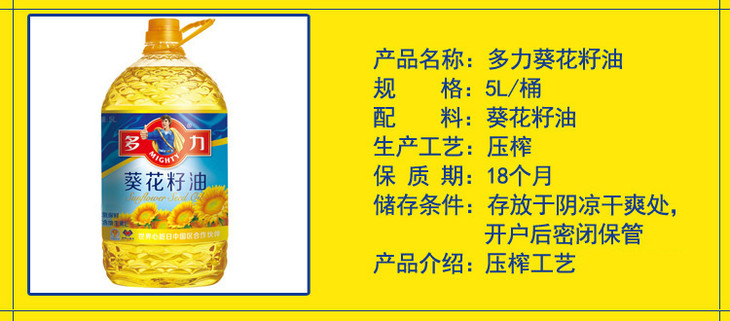 多力葵花籽油5L 少吃油 吃好油