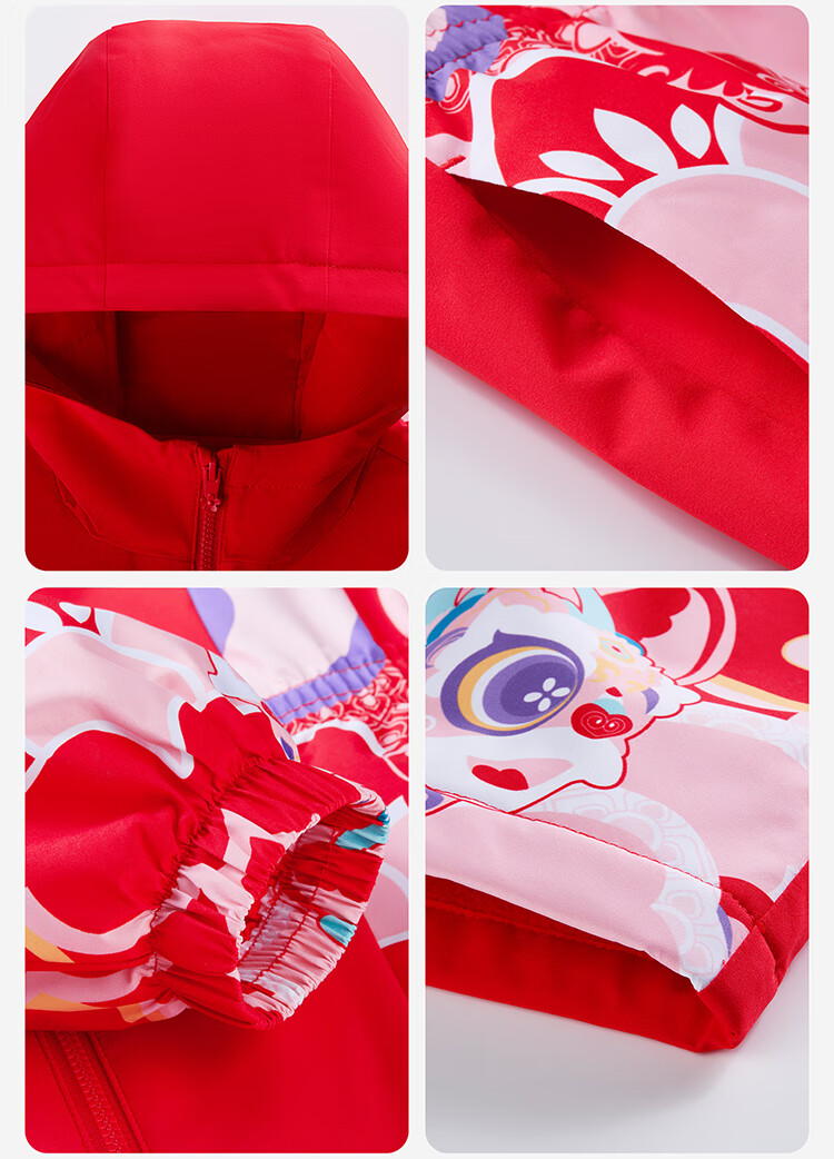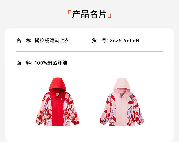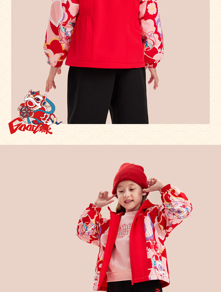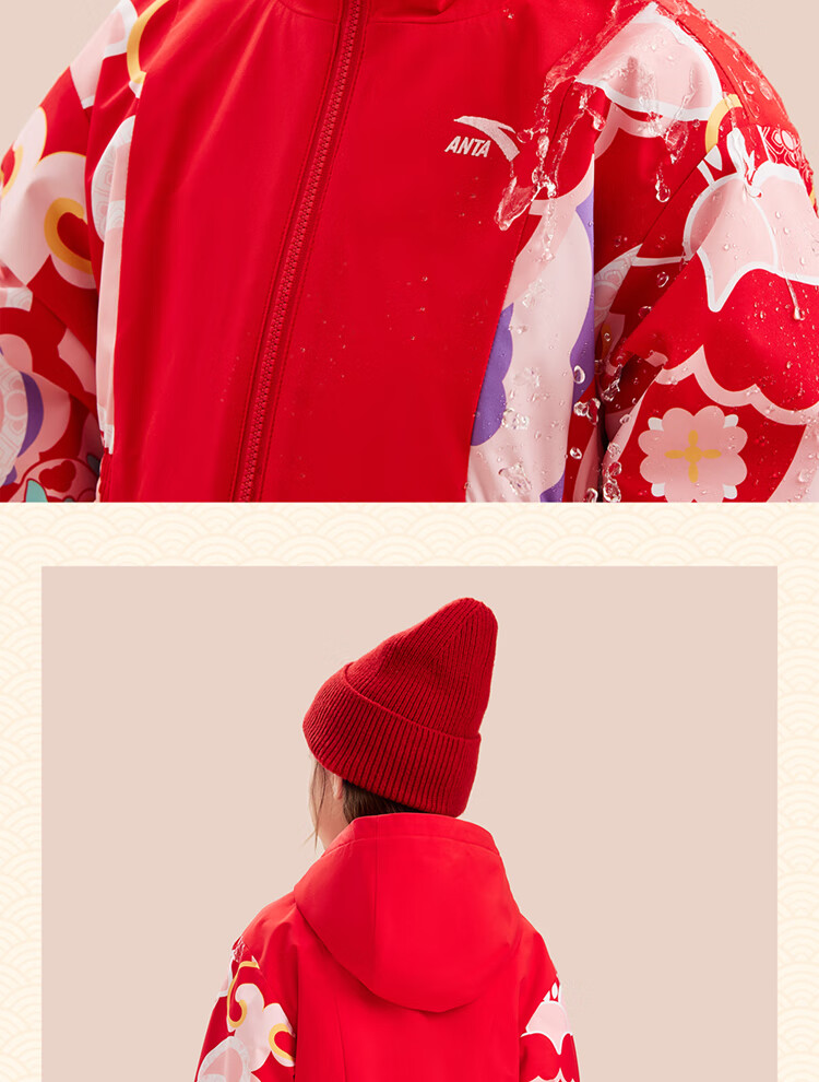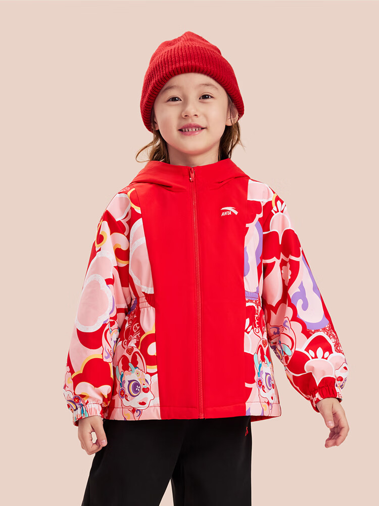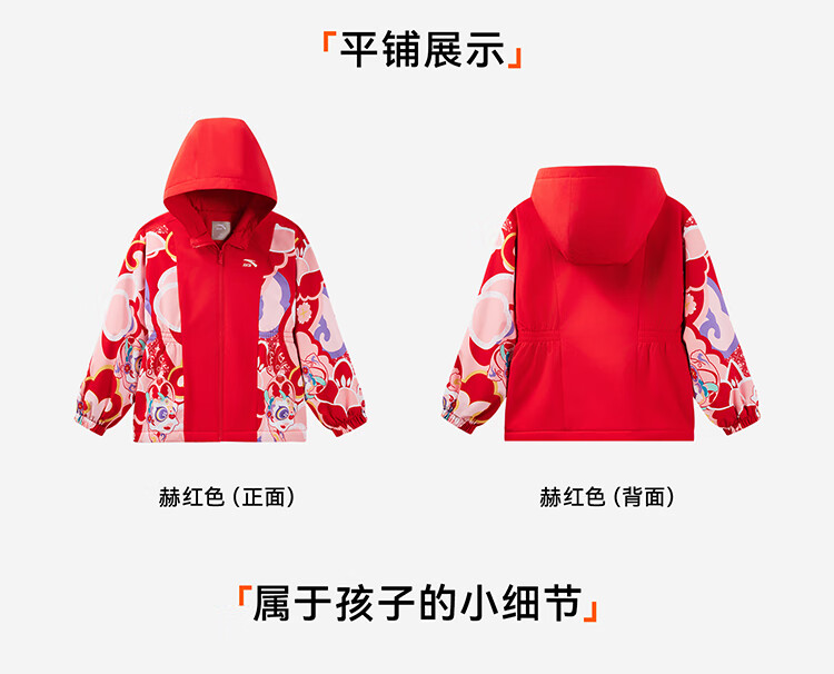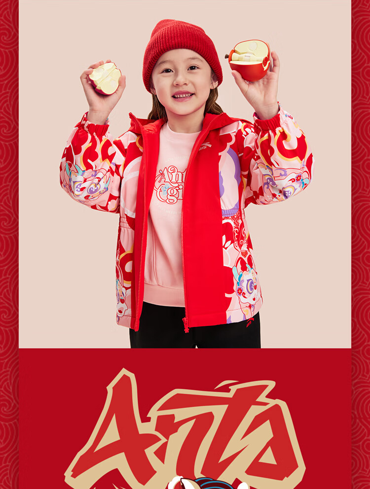 安踏儿童女小童加绒外套红色衣服2025防水防风保暖外套362519606N