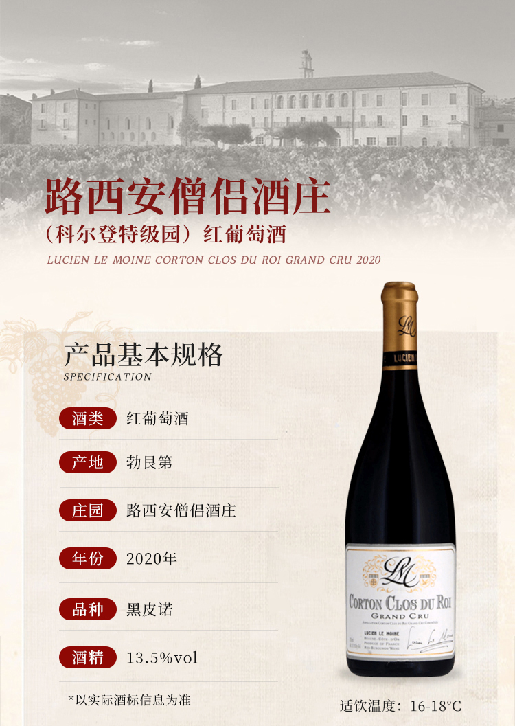 2020 Lucien Le Moine Corton Clos du Roi Grand Cru 路西安僧侣国王(科尔登特级园)红葡萄酒