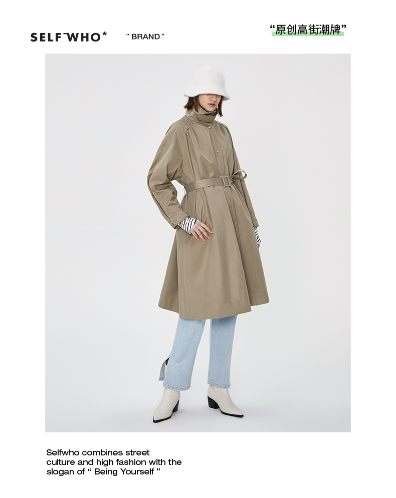 Self Who2025时装周同款中长款风衣垂感气质大衣女秋季流行外套