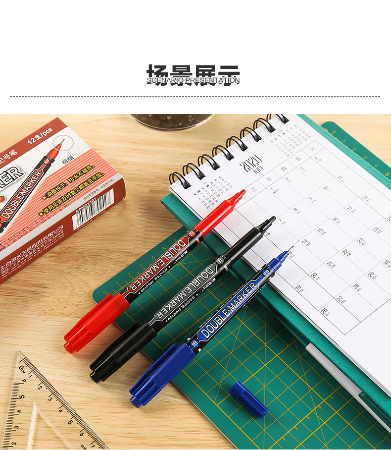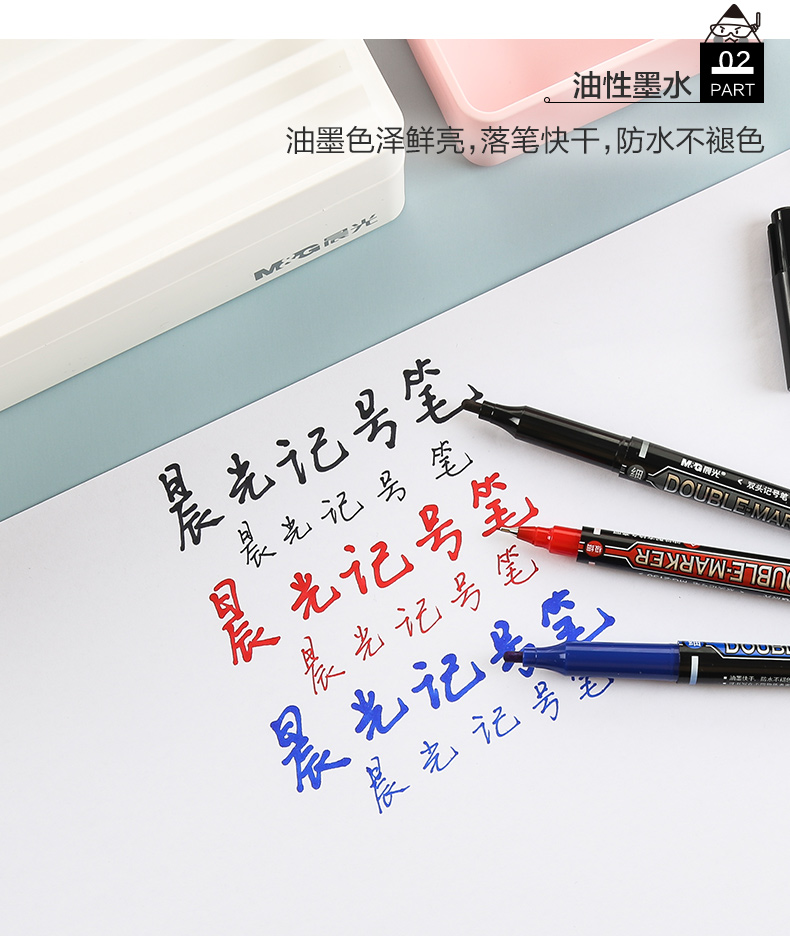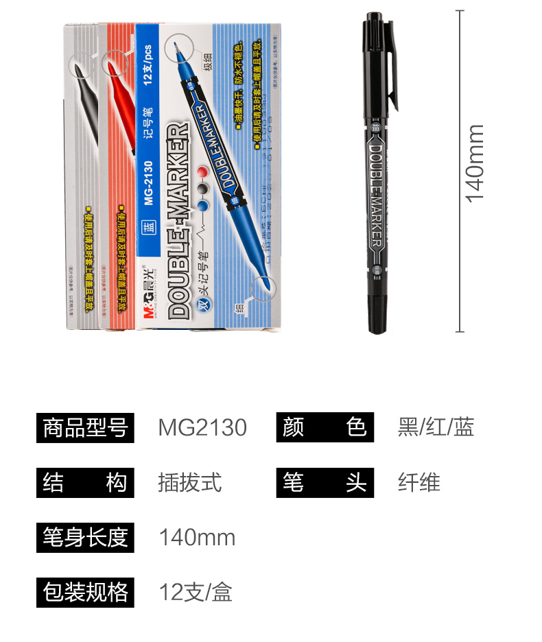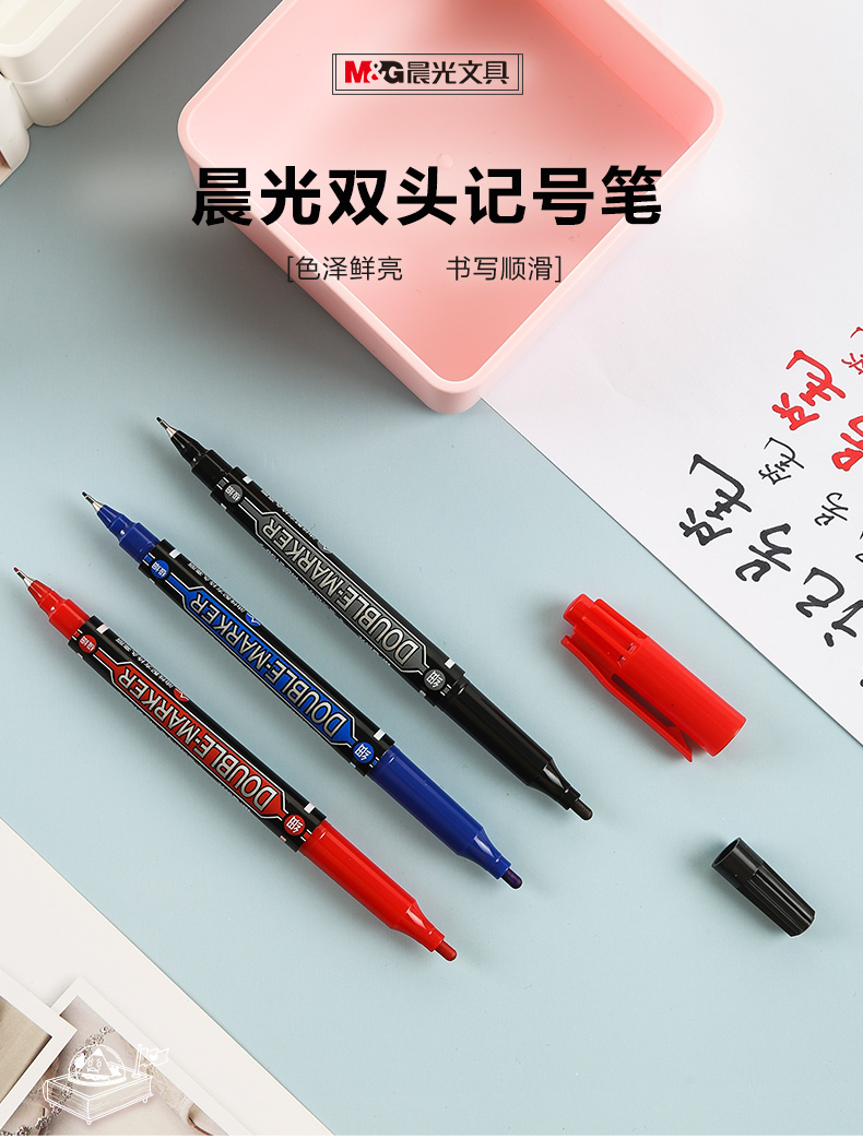 【仅供集采】晨光MG-2130文具 144支/包 记号笔 快干双头油性笔防水不褪色持久勾线笔办公商务专用会议标记涂鸦签字顺滑多功能彩色记号笔