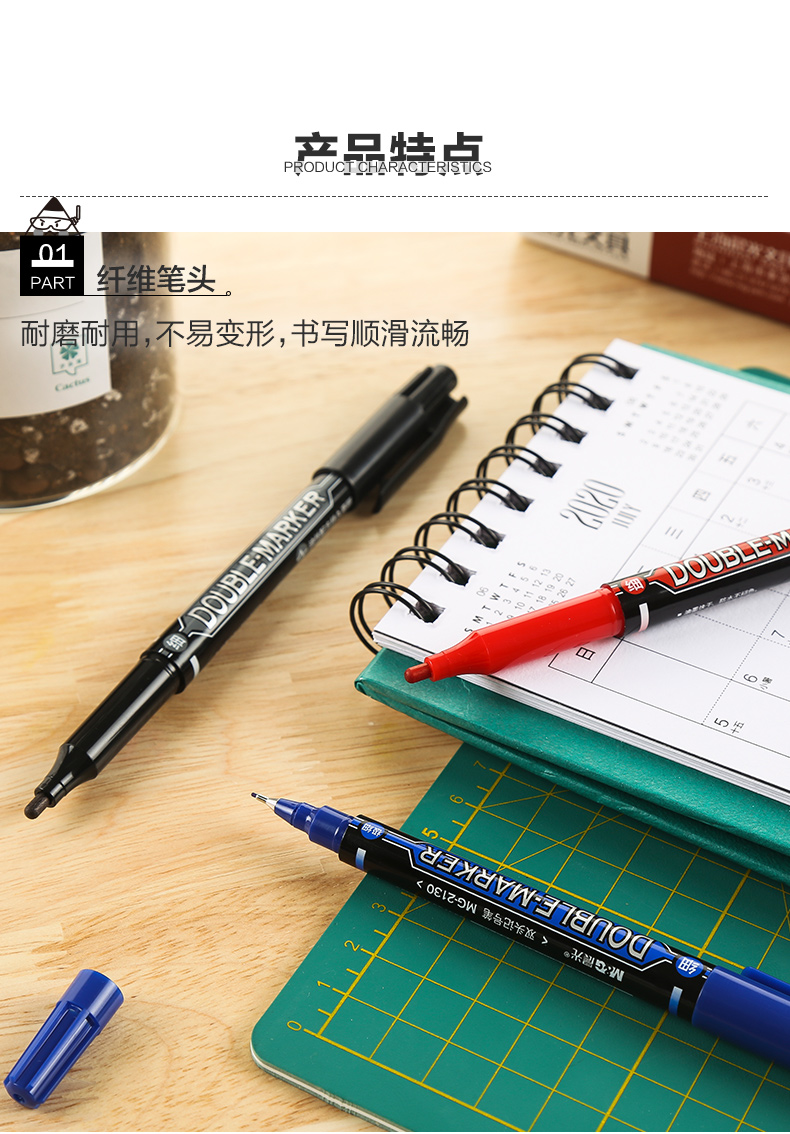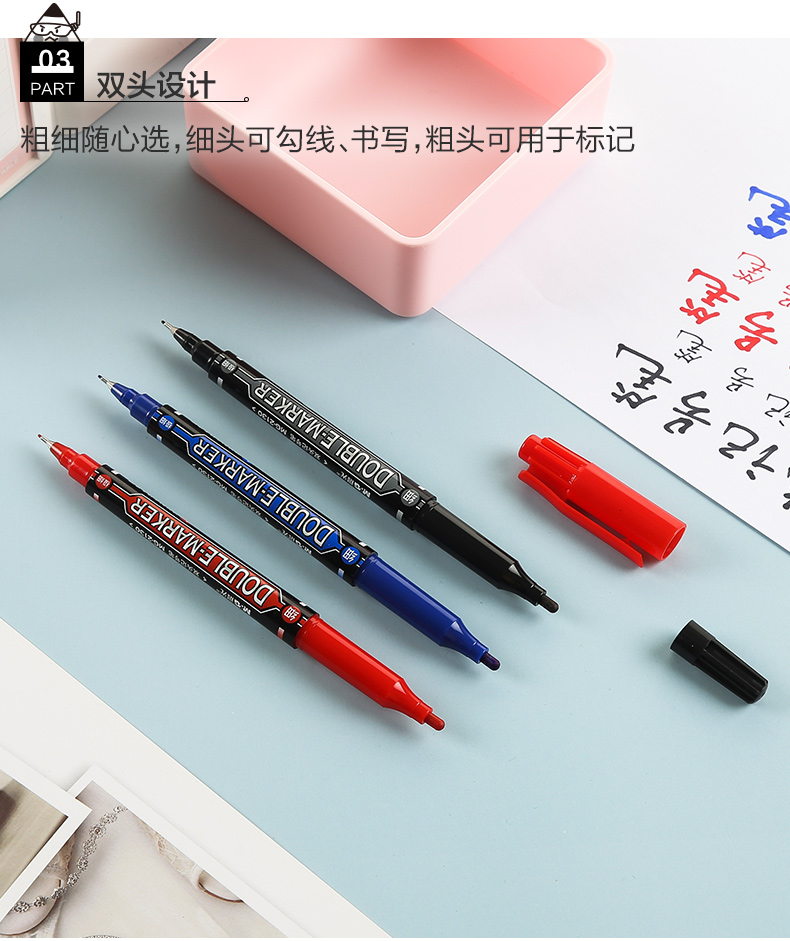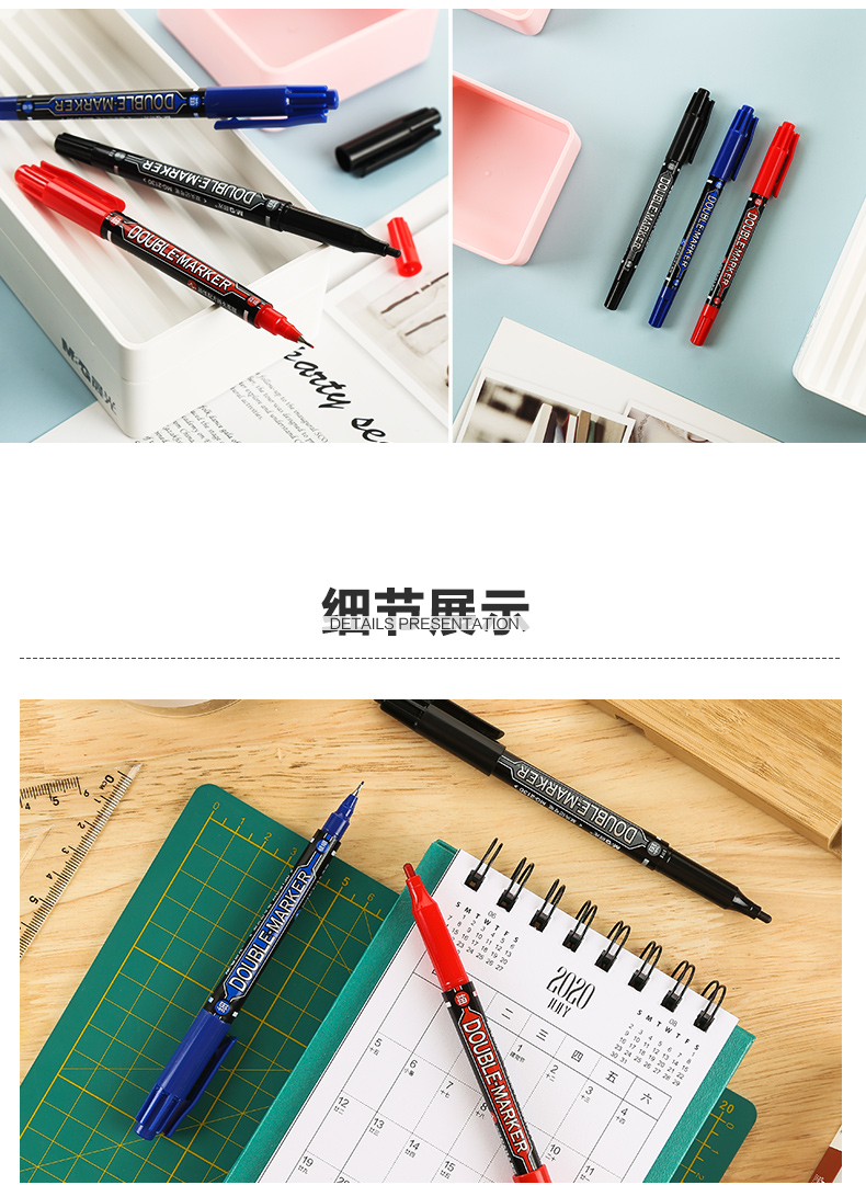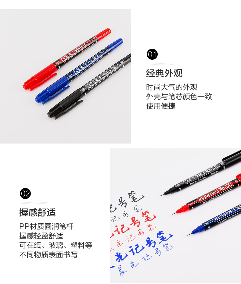 【仅供集采】晨光MG-2130文具 144支/包 记号笔 快干双头油性笔防水不褪色持久勾线笔办公商务专用会议标记涂鸦签字顺滑多功能彩色记号笔
