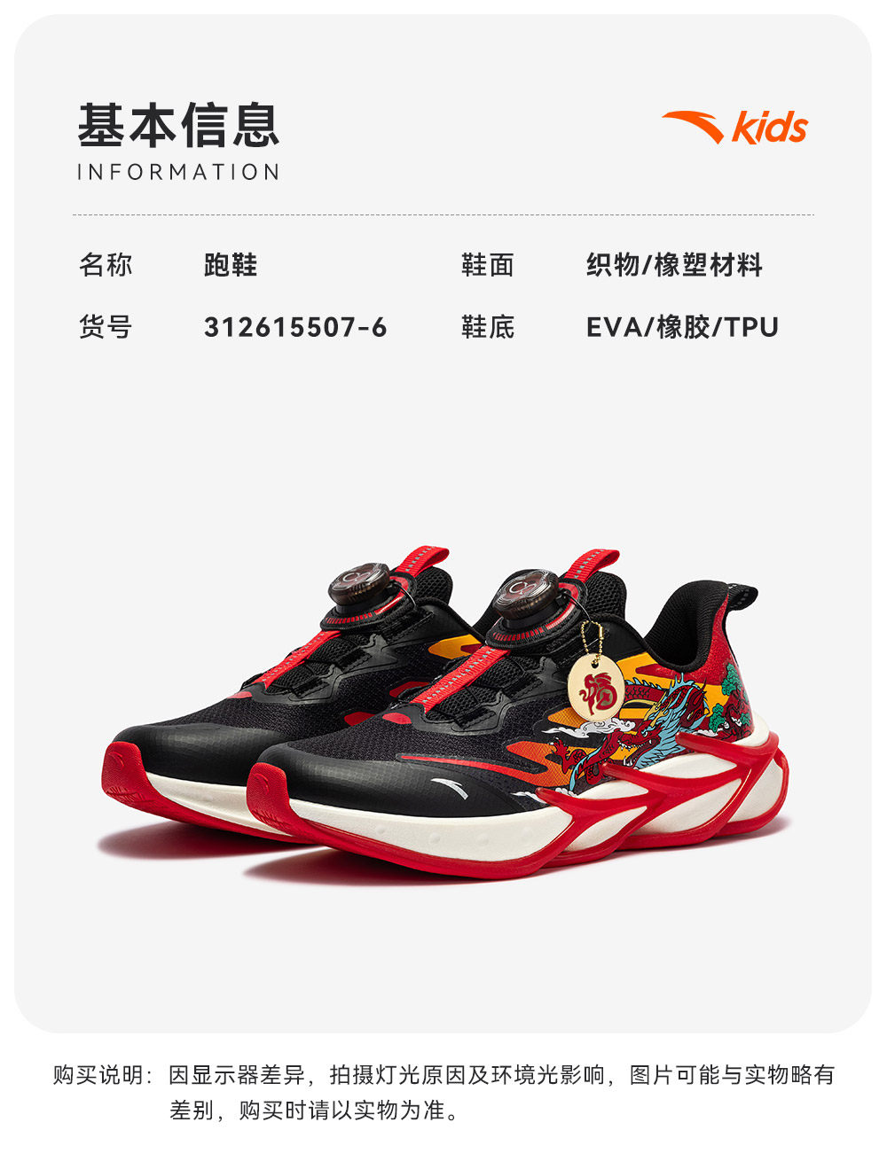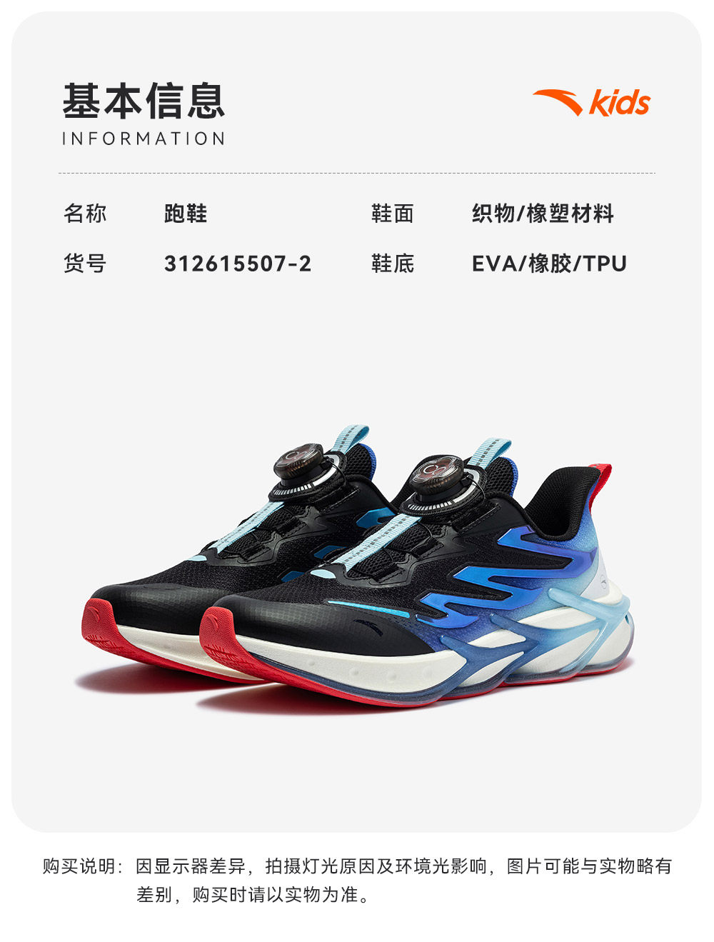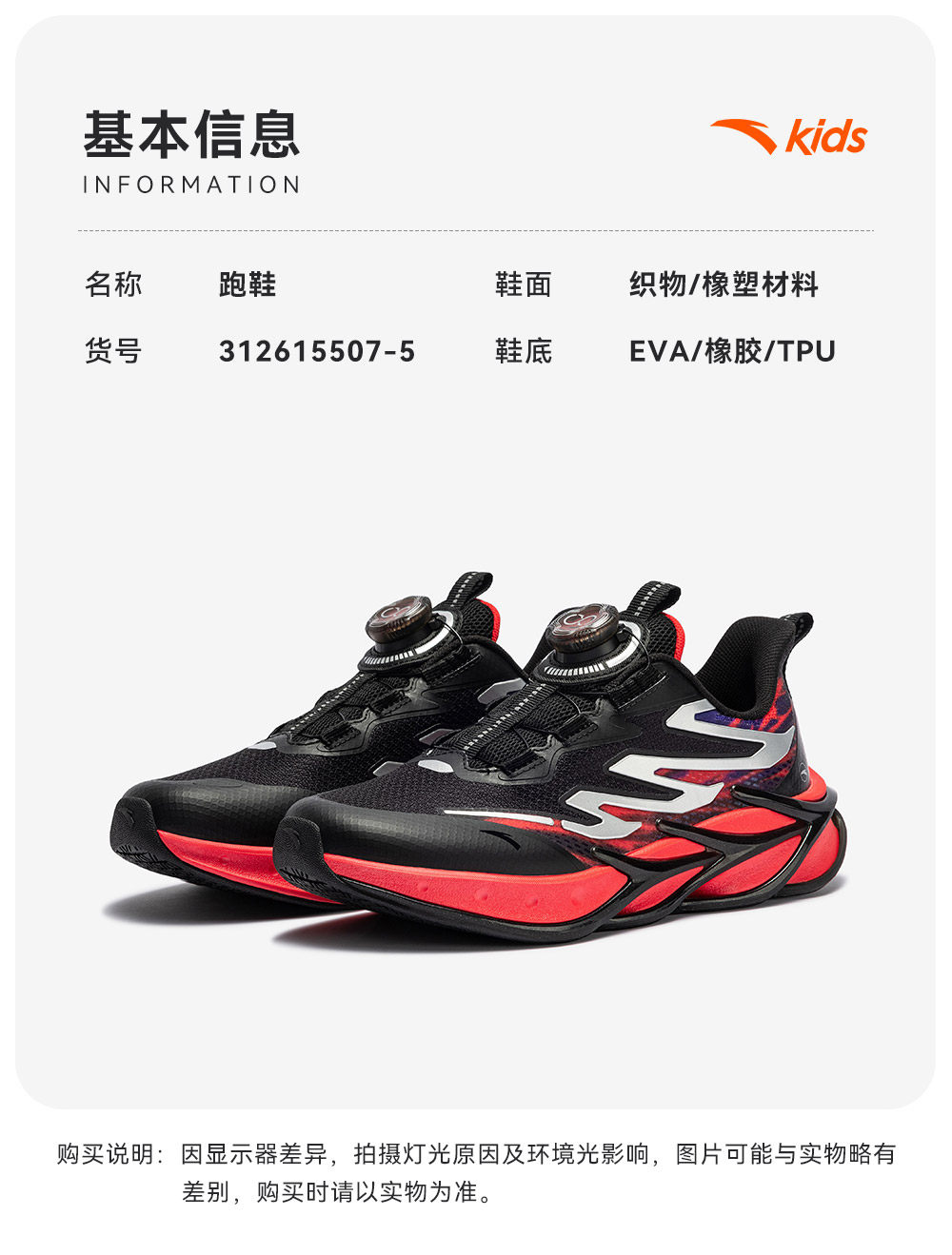 安踏儿童赤焰6PRO跑鞋2026年新款童鞋跑步鞋运动旋钮鞋缓震舒适312615507