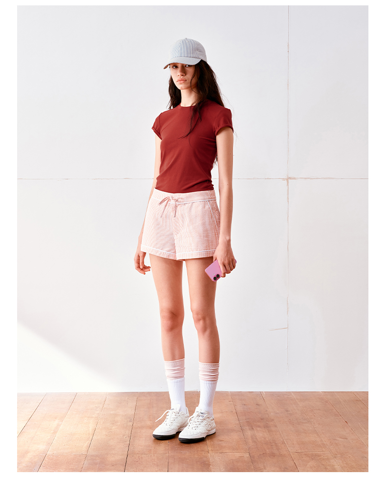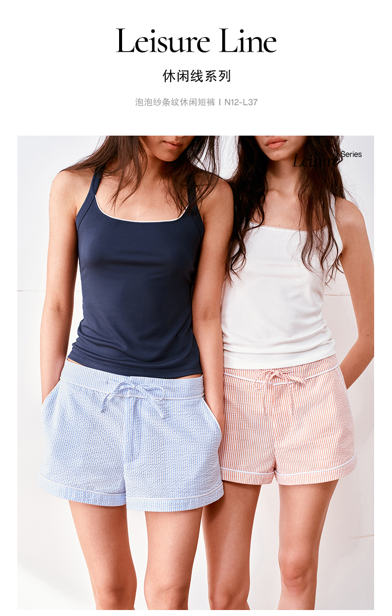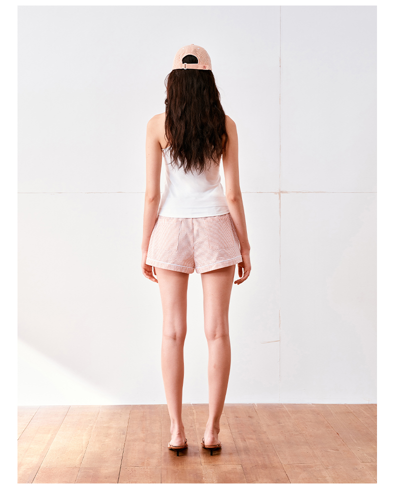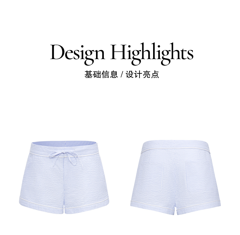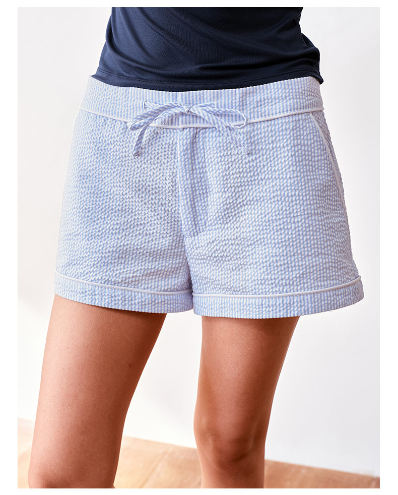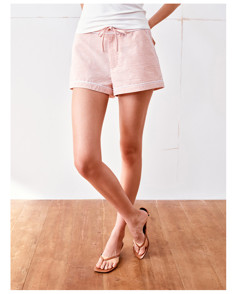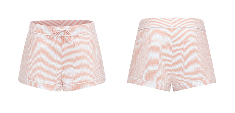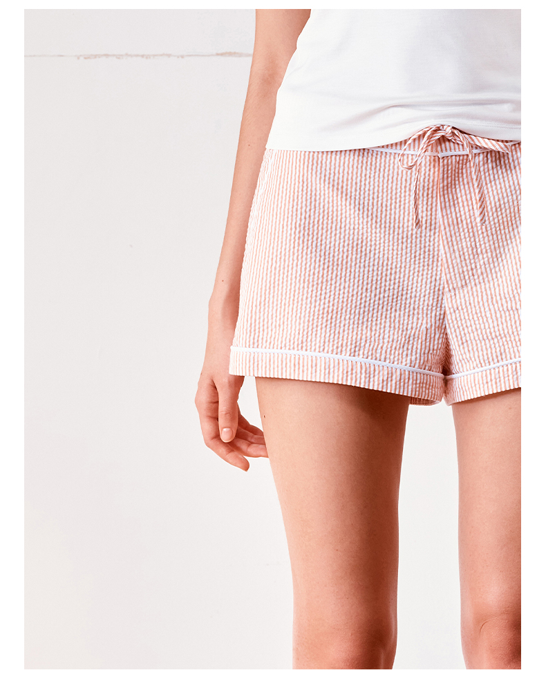 NUTH泡泡纱条纹休闲短裤-橙白条纹色 蓝白条纹色
