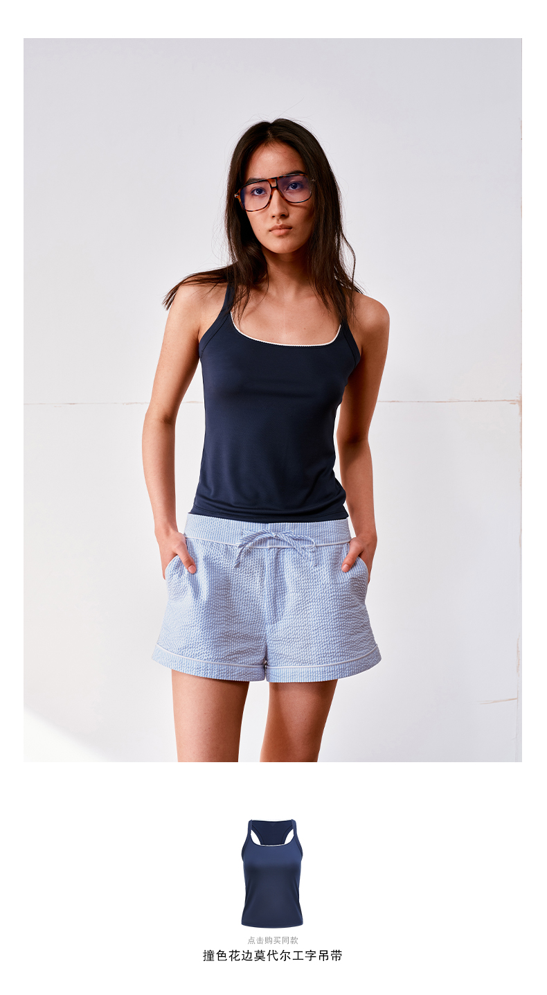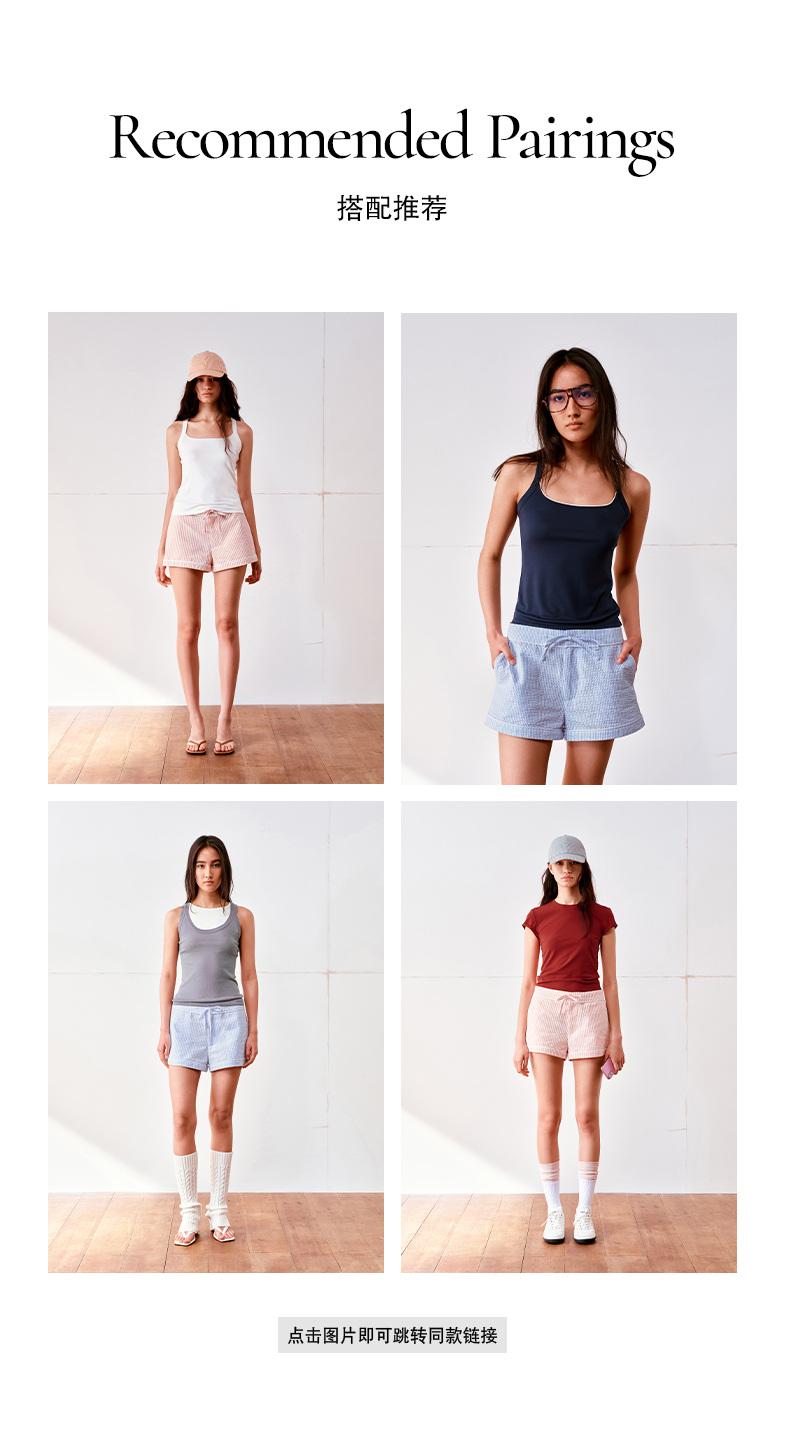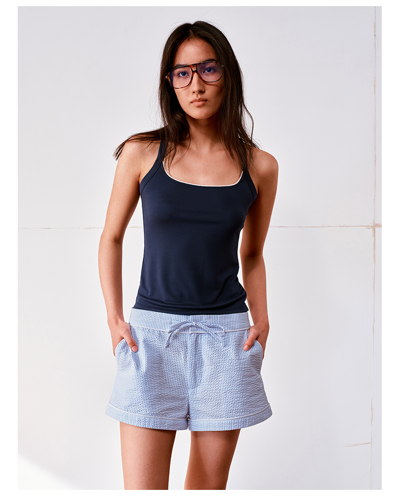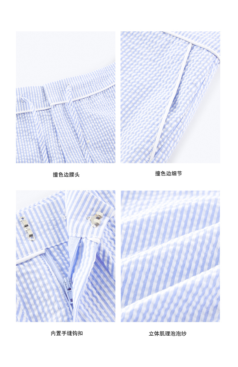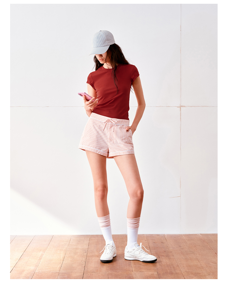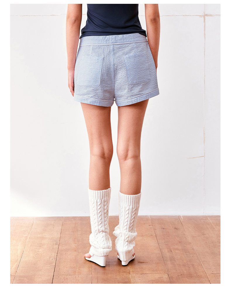 NUTH泡泡纱条纹休闲短裤-橙白条纹色 蓝白条纹色
