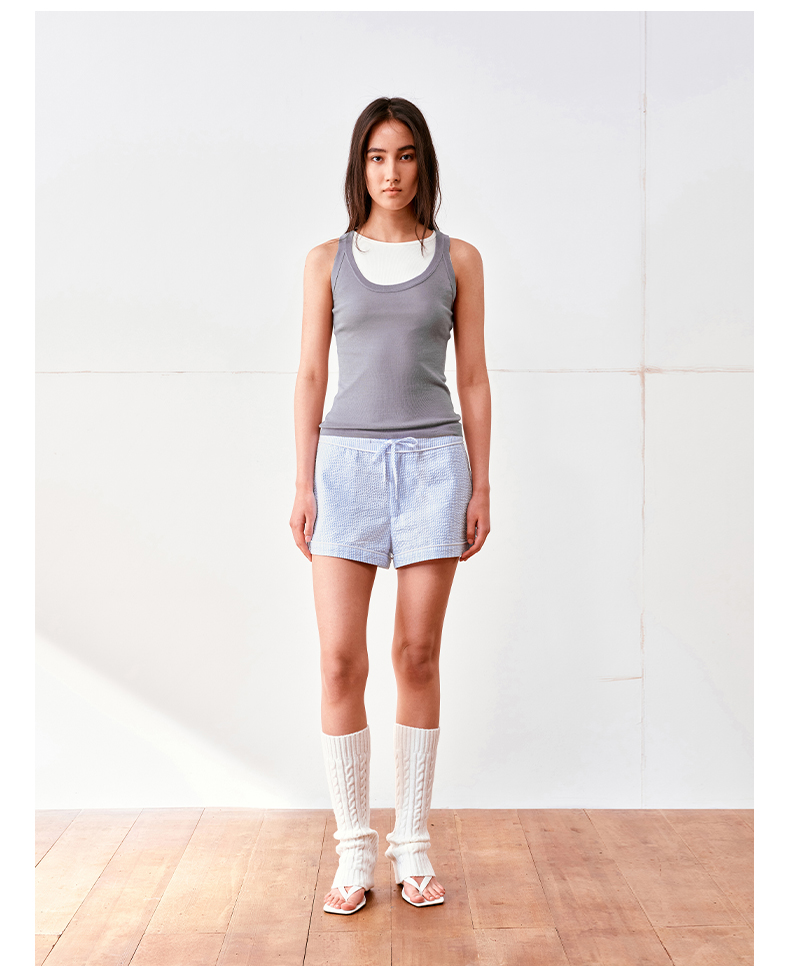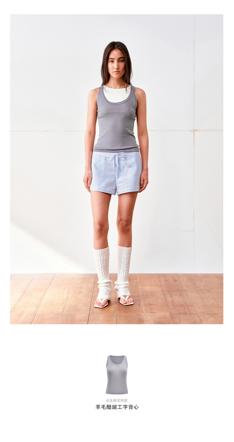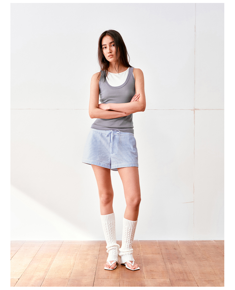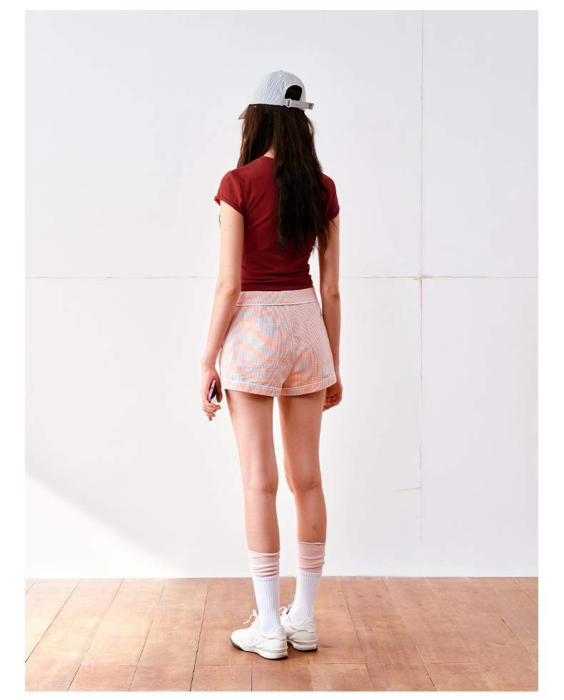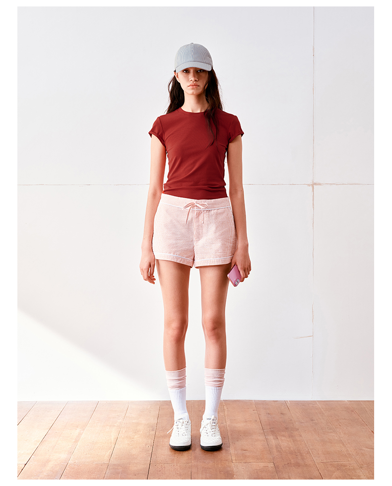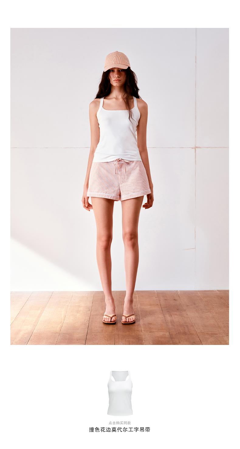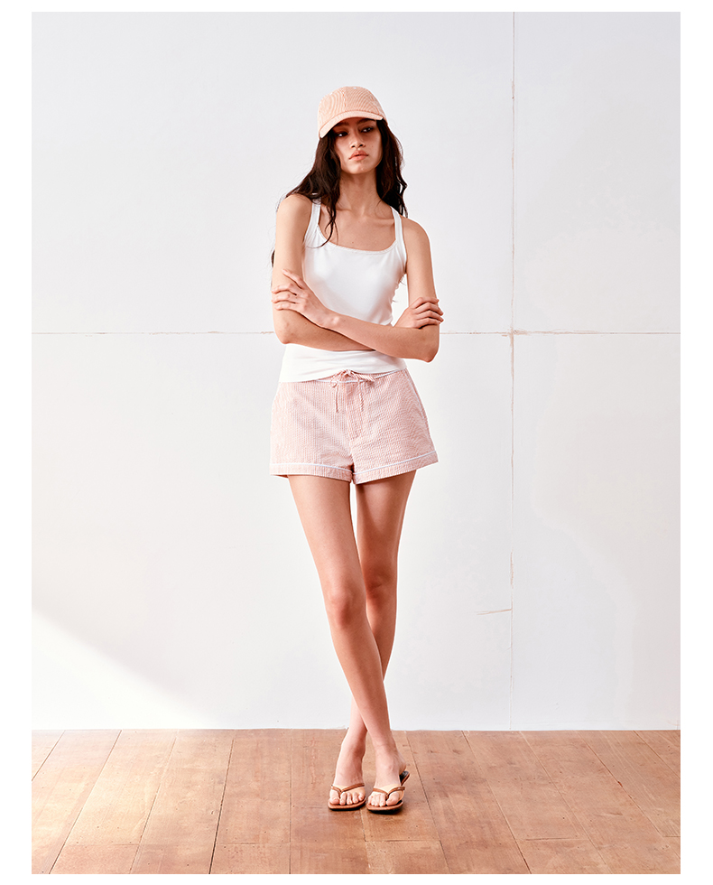 NUTH泡泡纱条纹休闲短裤-橙白条纹色 蓝白条纹色