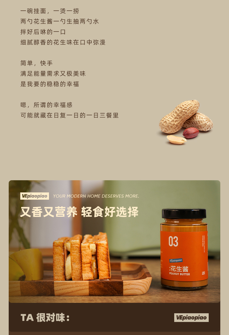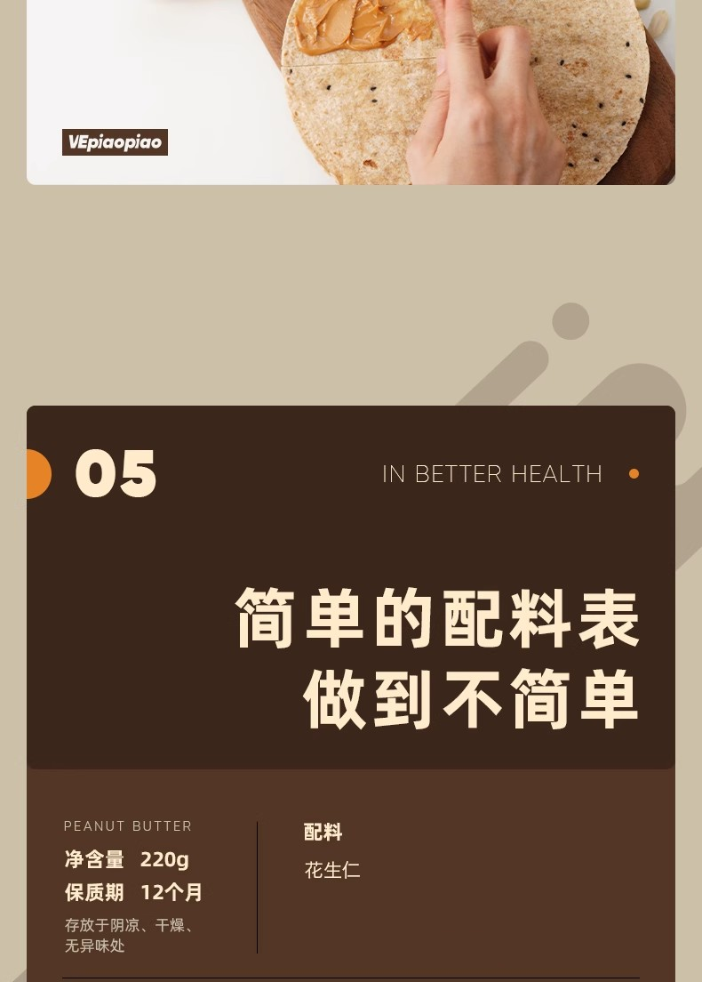 VEpiaopiao No.03 纯花生酱【拌面/三明治/面包】